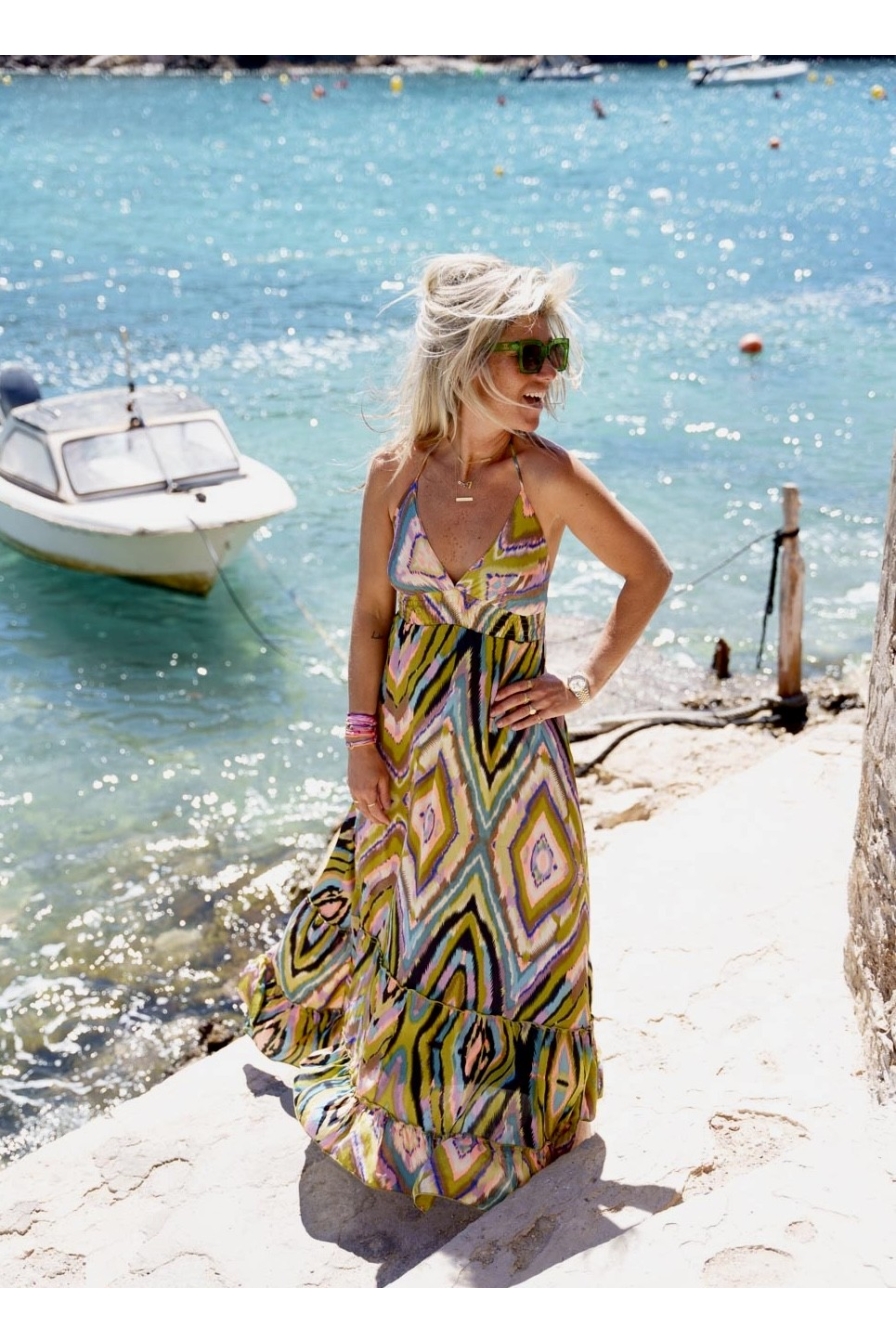 Dress Laurana, een adembenemende combinatie van stijl en comfort. Gemaakt van 100% viscose, biedt deze jurk niet alleen een luxueuze uitstraling maar ook een ongeëvenaard draagcomfort. Met zijn verstelbare nek- en rugbandjes en stretchy band is dit een veelzijdig stuk dat moeiteloos meebeweegt met jouw unieke stijl. Of je nu op weg bent naar het strand, een zomerse brunch of een avondje uit, Dress Laurana past zich perfect aan aan elke gelegenheid en elk figuur, tot en met maat L/XL.
