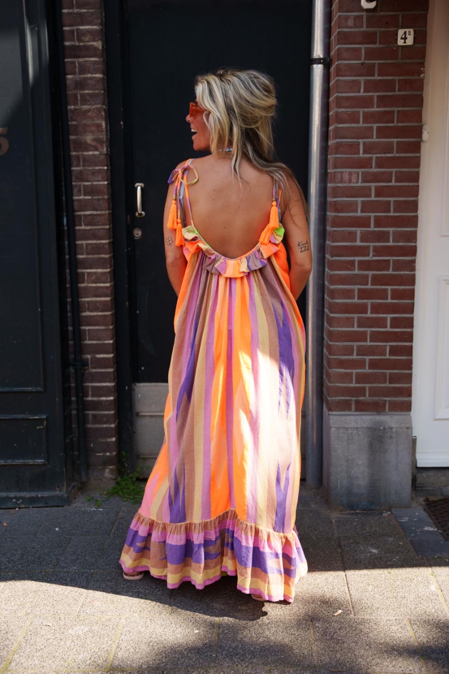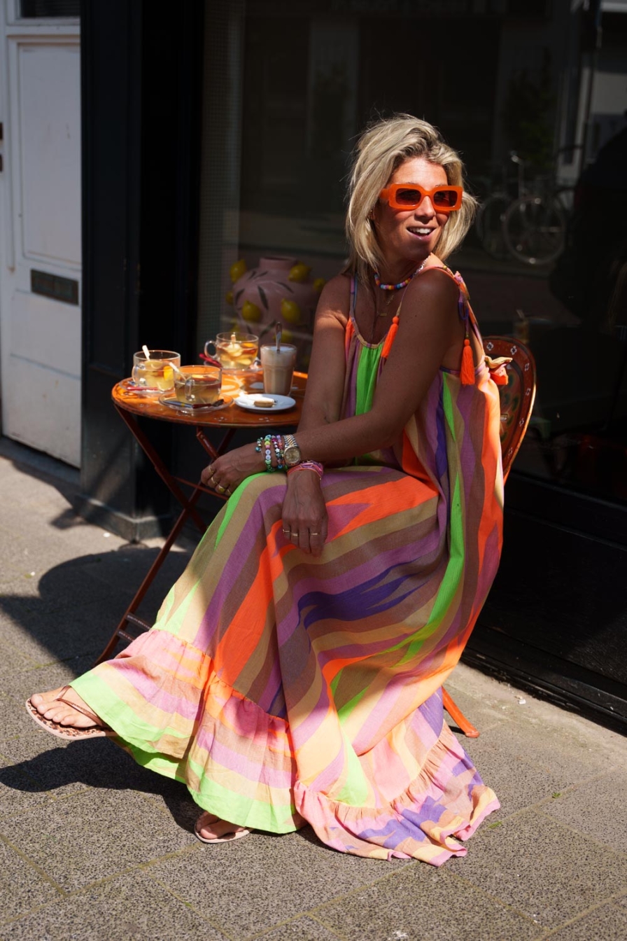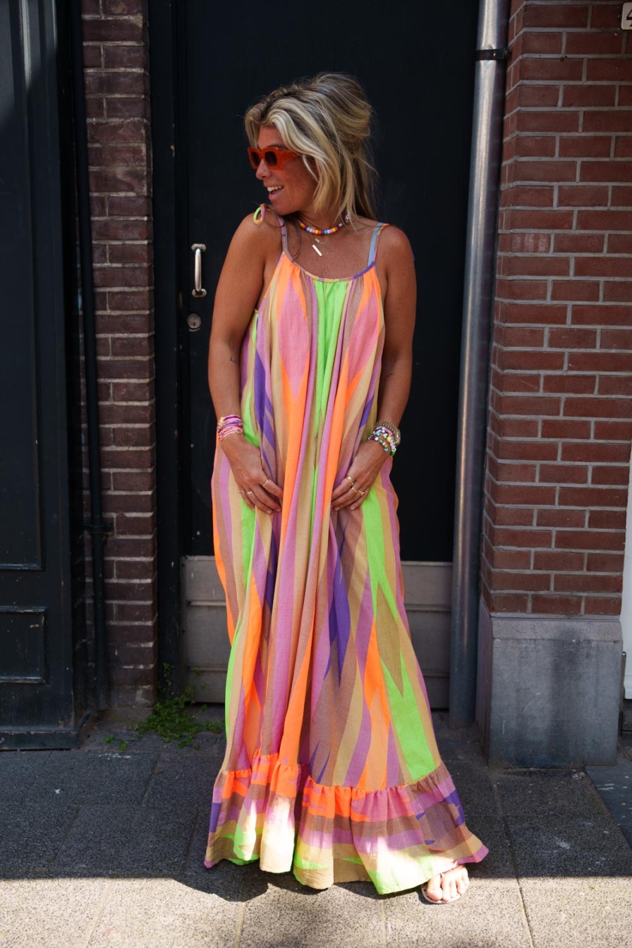 Dress Luz! Deze eye-catcher is waarschijnlijk dé ster van het seizoen. Met verstelbare spaghettibandjes en handige steekzakken is dit onesize model een veelzijdige toevoeging aan je garderobe. Draagbaar tot en met maat L/XL, dus perfect voor elk figuur.