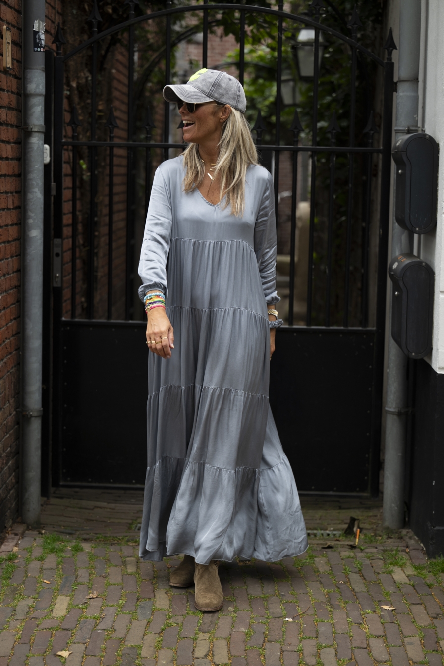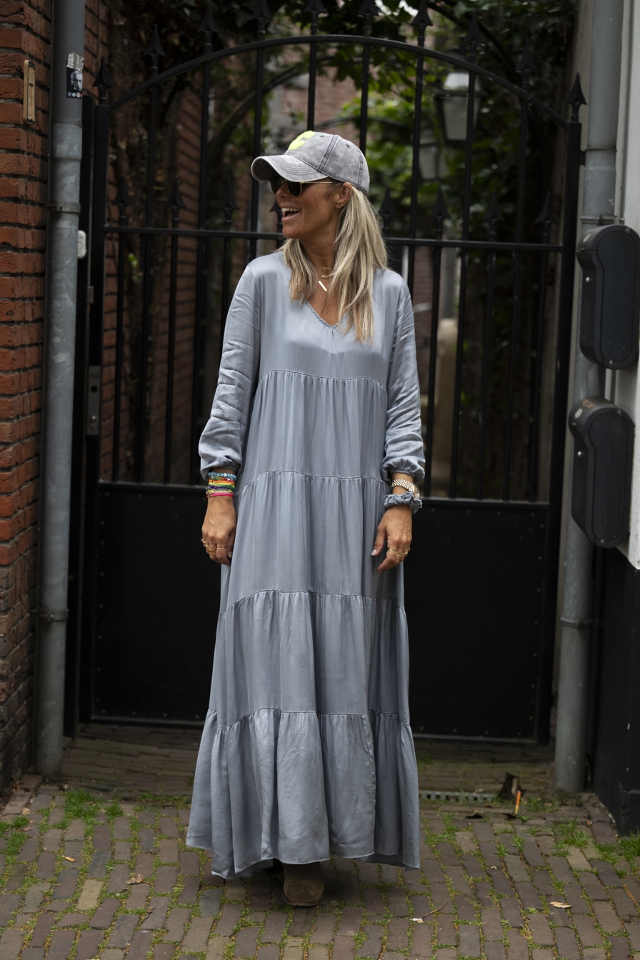Dress Scrunchie is gemaakt van een mix van zijde en viscose – voelt echt als een droom op je huid! De V-hals en elastische polsboord...