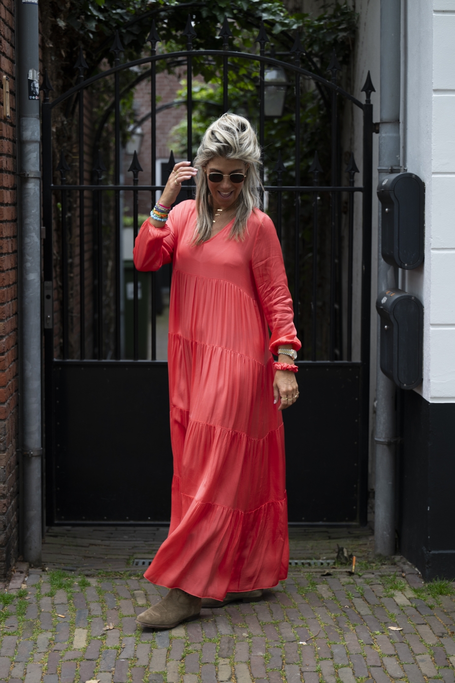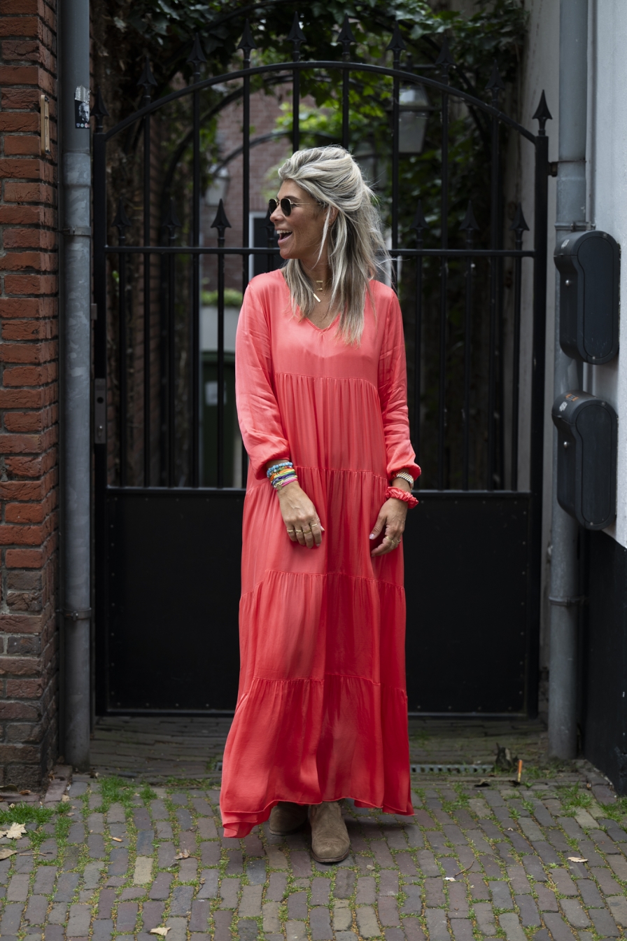 Dress Scrunchie is gemaakt van een mix van zijde en viscose – voelt echt als een droom op je huid! De V-hals en elastische polsboord...