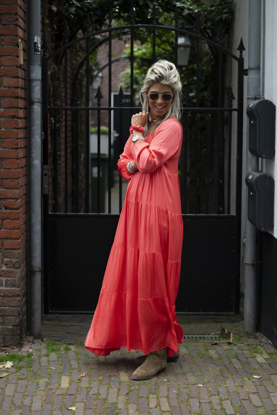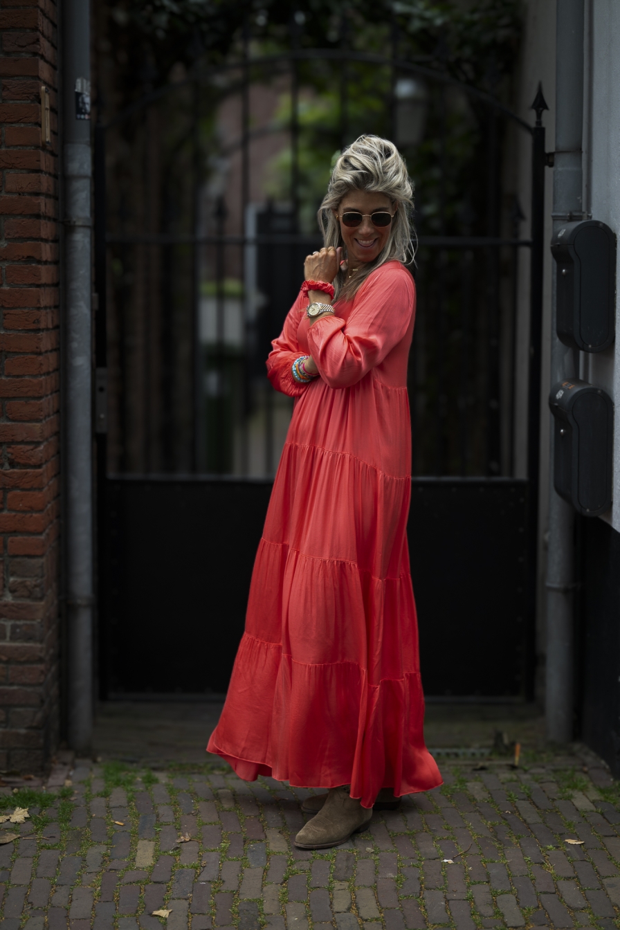 Dress Scrunchie is gemaakt van een mix van zijde en viscose – voelt echt als een droom op je huid! De V-hals en elastische polsboord geven ‘m net dat beetje extra flair. We geven je er dit jaar een BIJPASSENDE SCRUNCHIE bij van exact dezelfde stof! Draag 'm in je haar of om je pols – matchy matchy done right! One-size en draagbaar t/m maat L/XL