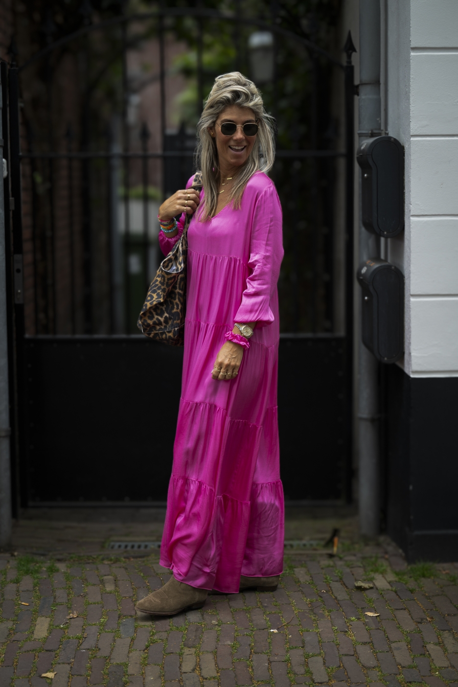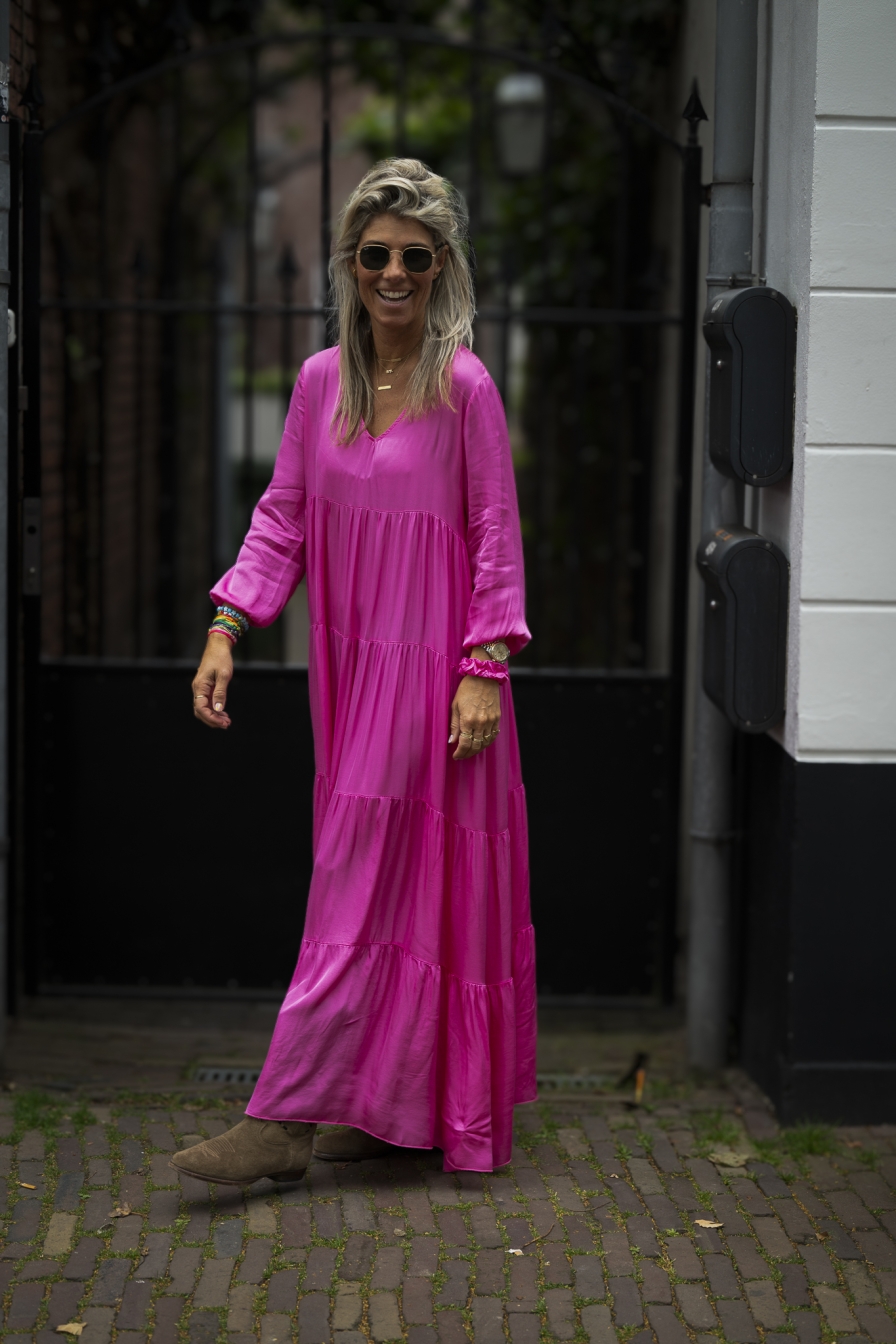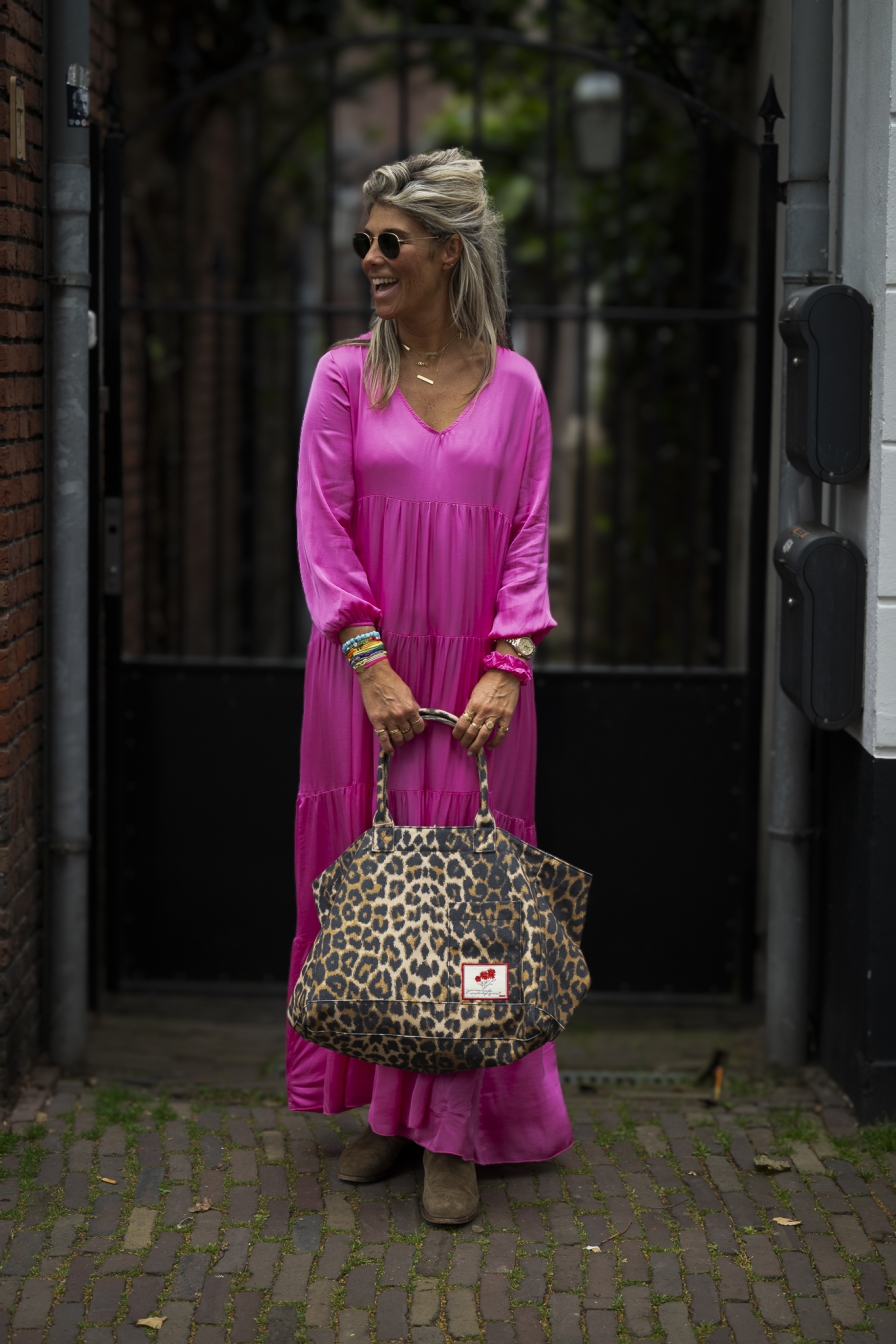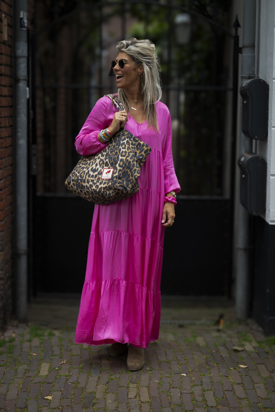 Dress Scrunchie is gemaakt van een mix van zijde en viscose – voelt echt als een droom op je huid! De V-hals en elastische polsboord geven ‘m net dat beetje extra flair. We geven je er dit jaar een BIJPASSENDE SCRUNCHIE bij van exact dezelfde stof! Draag 'm in je haar of om je pols – matchy matchy done right! One-size en draagbaar t/m maat L/XL
