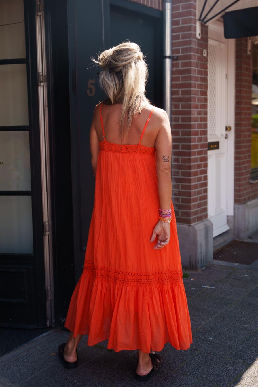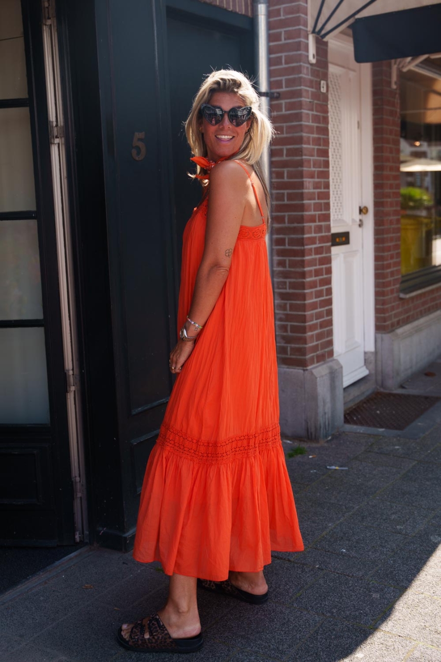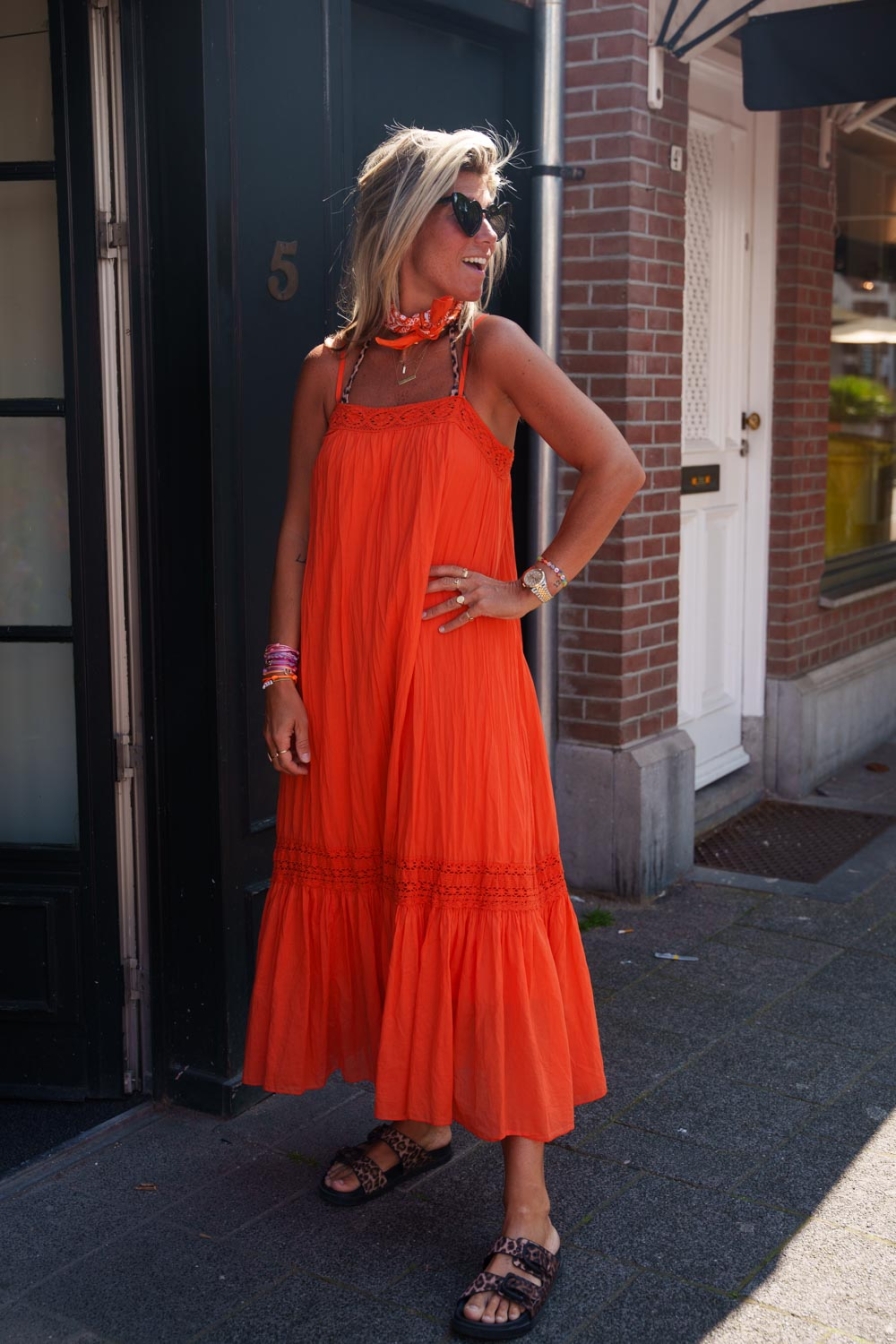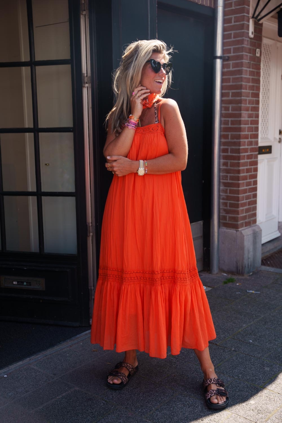 De Semola-jurk, gemaakt van 100% katoen, is een perfecte combinatie van comfort en stijl. Met verstelbare spaghetti bandjes en een vast onderjurkje om doorschijnen te voorkomen, biedt deze jurk zowel functionaliteit als elegantie. Een onmisbaar item voor elke zomergarderobe! Op de foto draag ik een S/M.