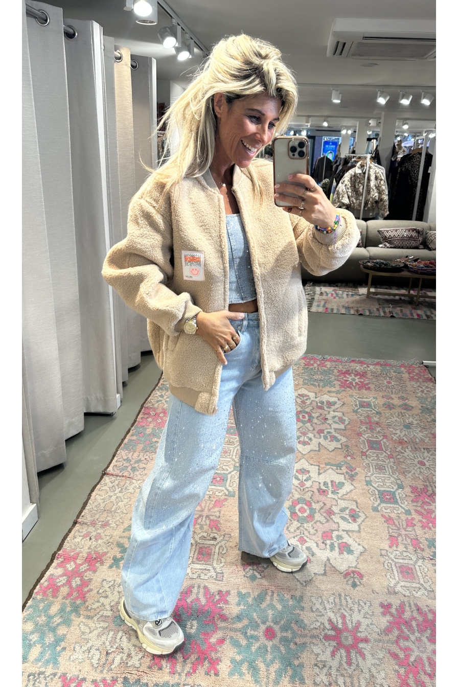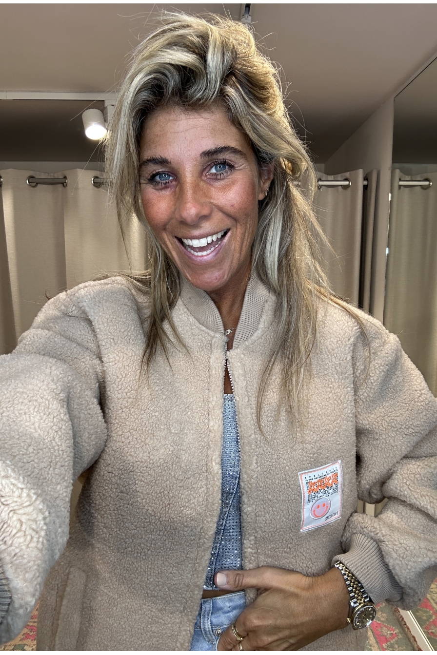 Verzending met DHL !Fluffy Jacket Smiley Beige
