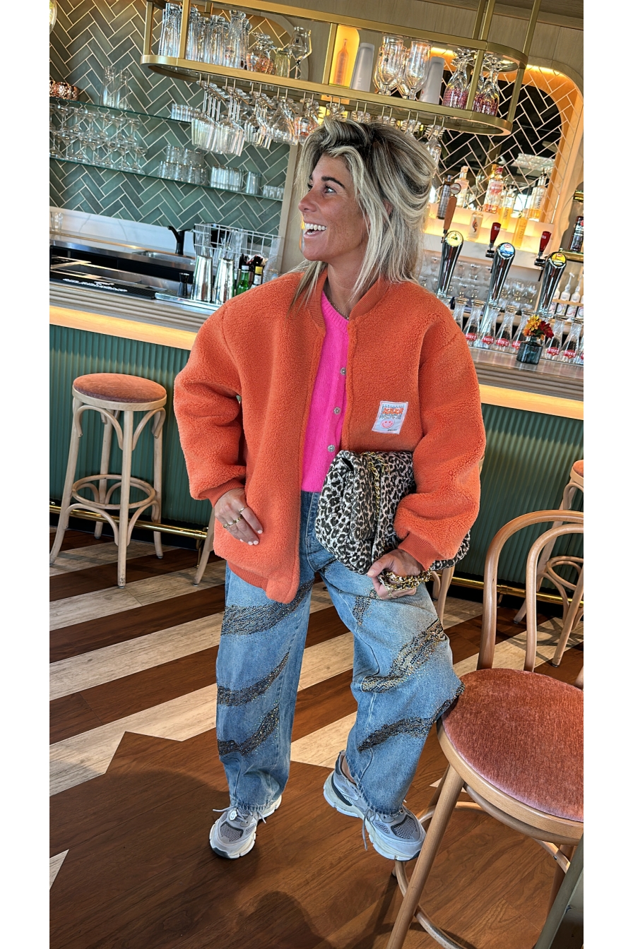 Verzending met DHL !Fluffy Jacket Smiley Oranje