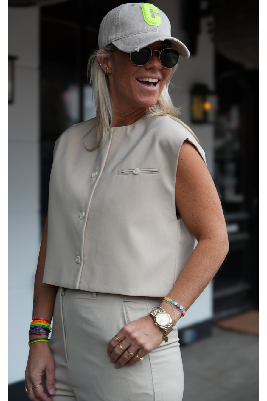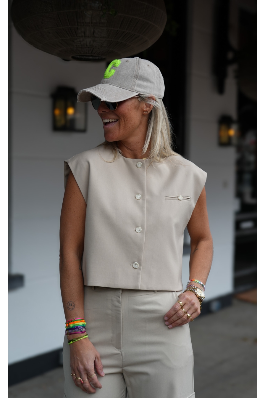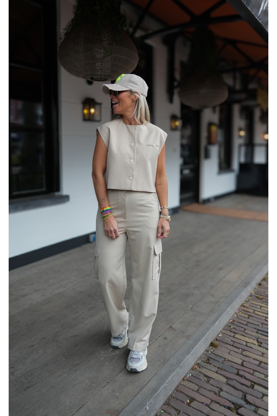 Gilet Romy maakt je look helemaal af! Deze stijlvolle must-have is verkrijgbaar in maat S/M en M/L. Op de foto draag ik maat S/M en ben 1.76m lang.