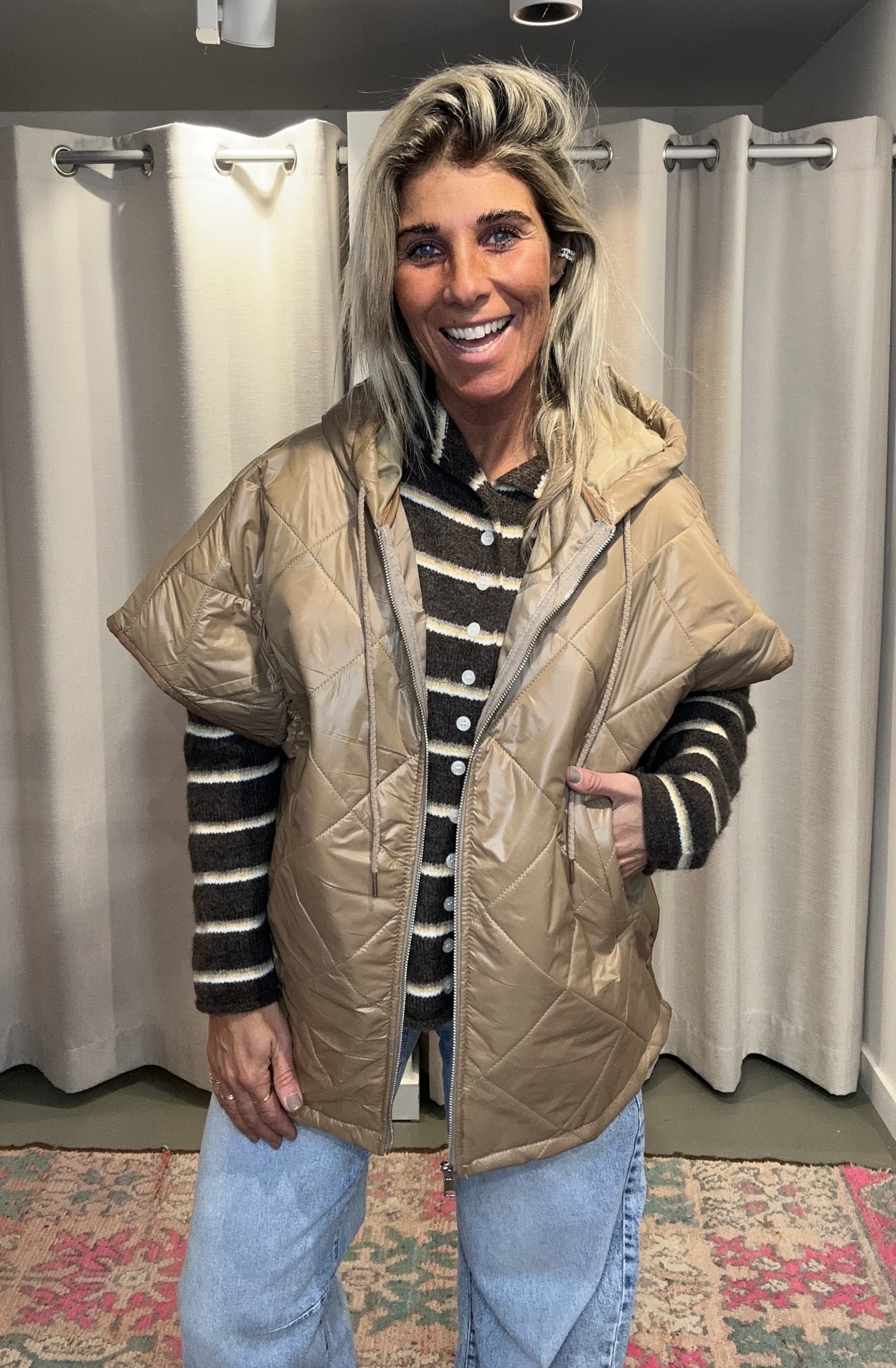 Nog 1 op voorraadVerzending met DHL !Hoody Bodywarmer Beige