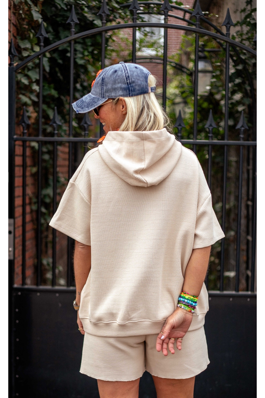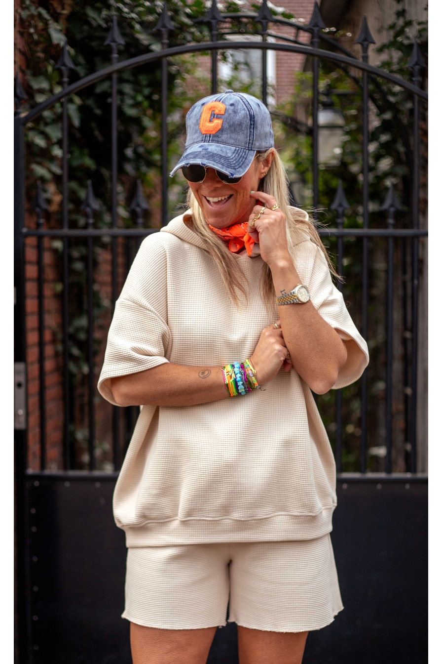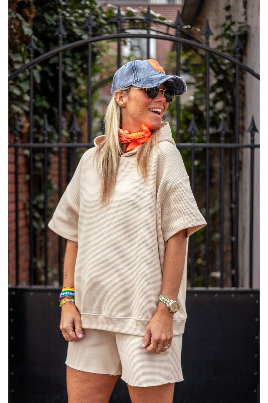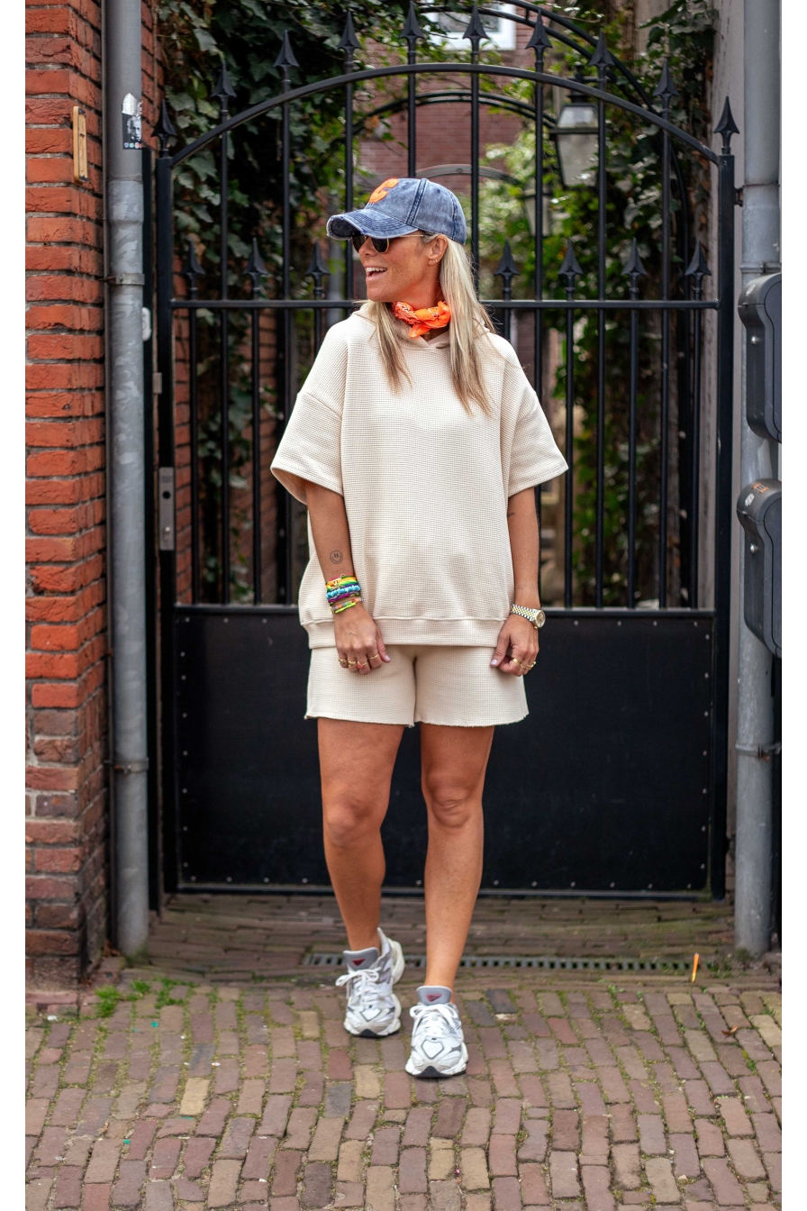 Deze hoody van 95% katoen is perfect voor een casual en trendy look. De hoody heeft korte mouwen, is Onesize en draag je tm maat L/XL!