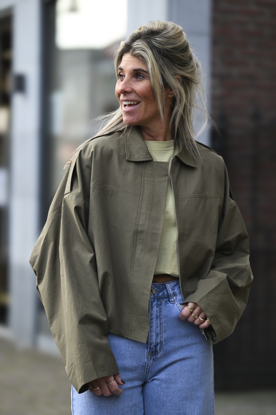 Jack Selma in legergroen is jouw nieuwe go-to. Onesize, licht oversized en afgewerkt met een stevige rvs-kleurige rits. Door het oversized model draag je deze topper tot en met maat XL/44.