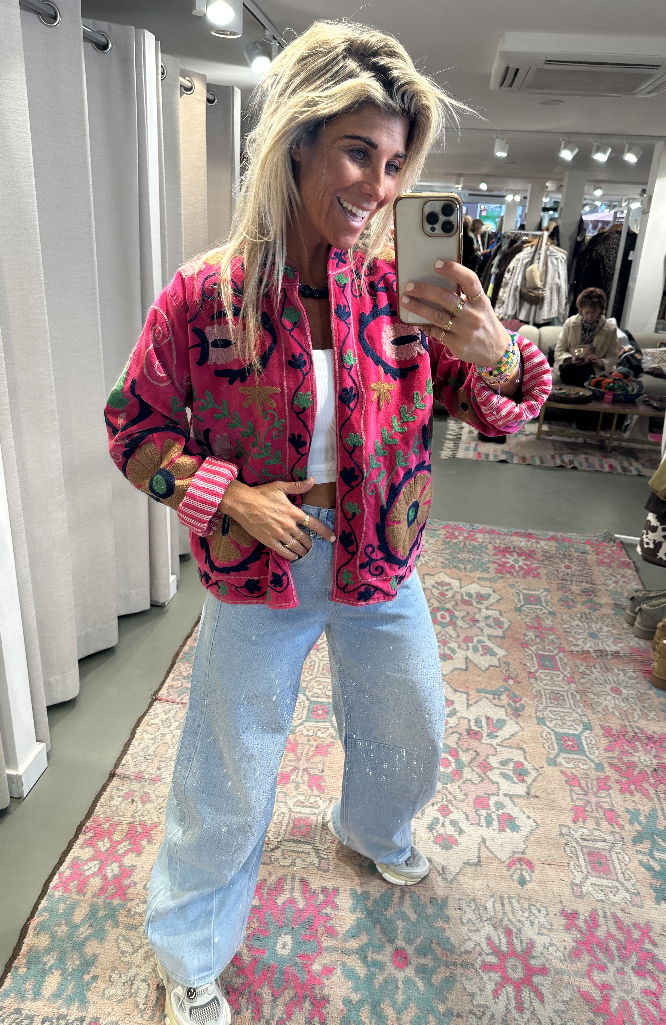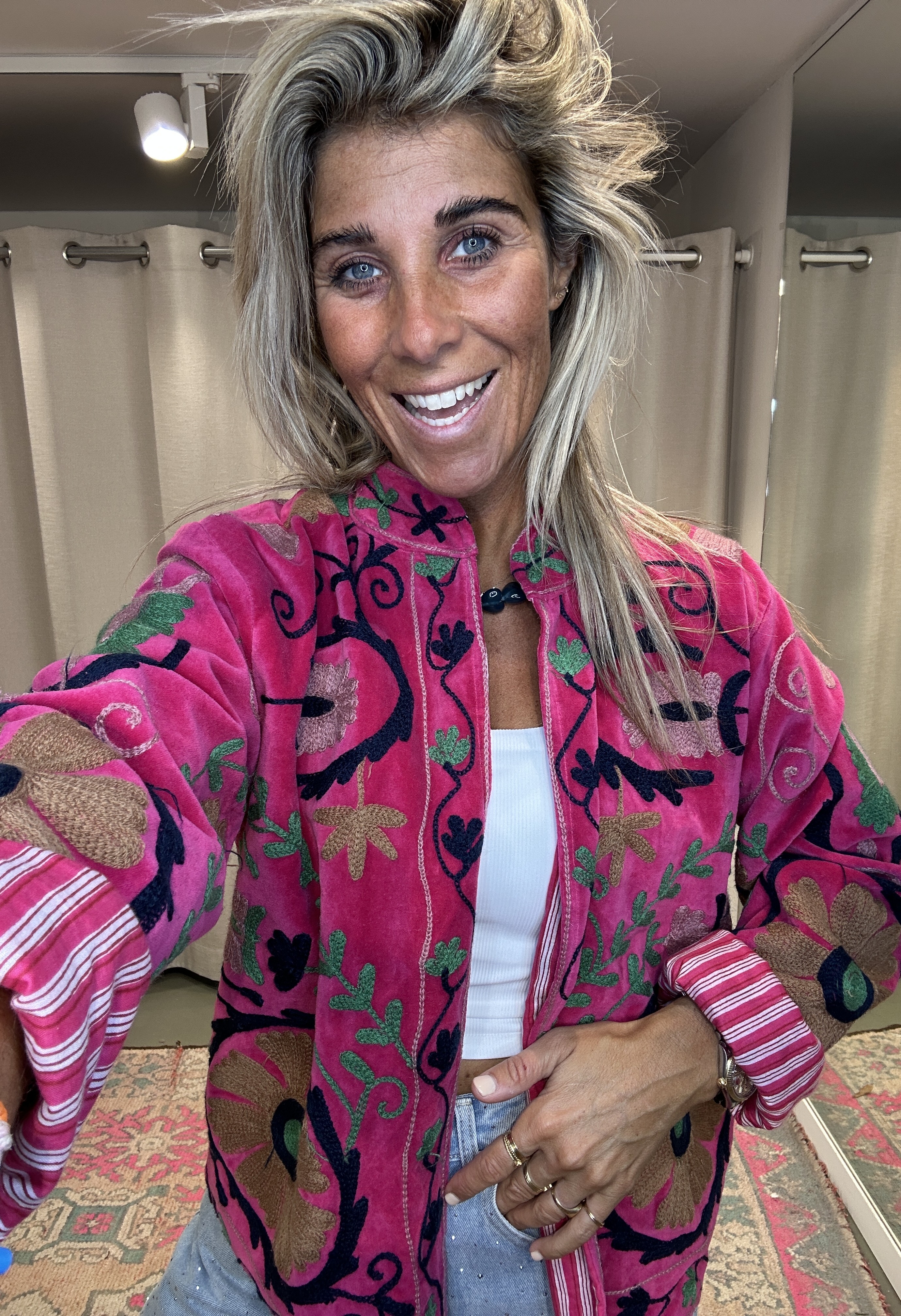 Nog 1 op voorraadVerzending met DHL !Jacket Velvet Flower Donkerroze