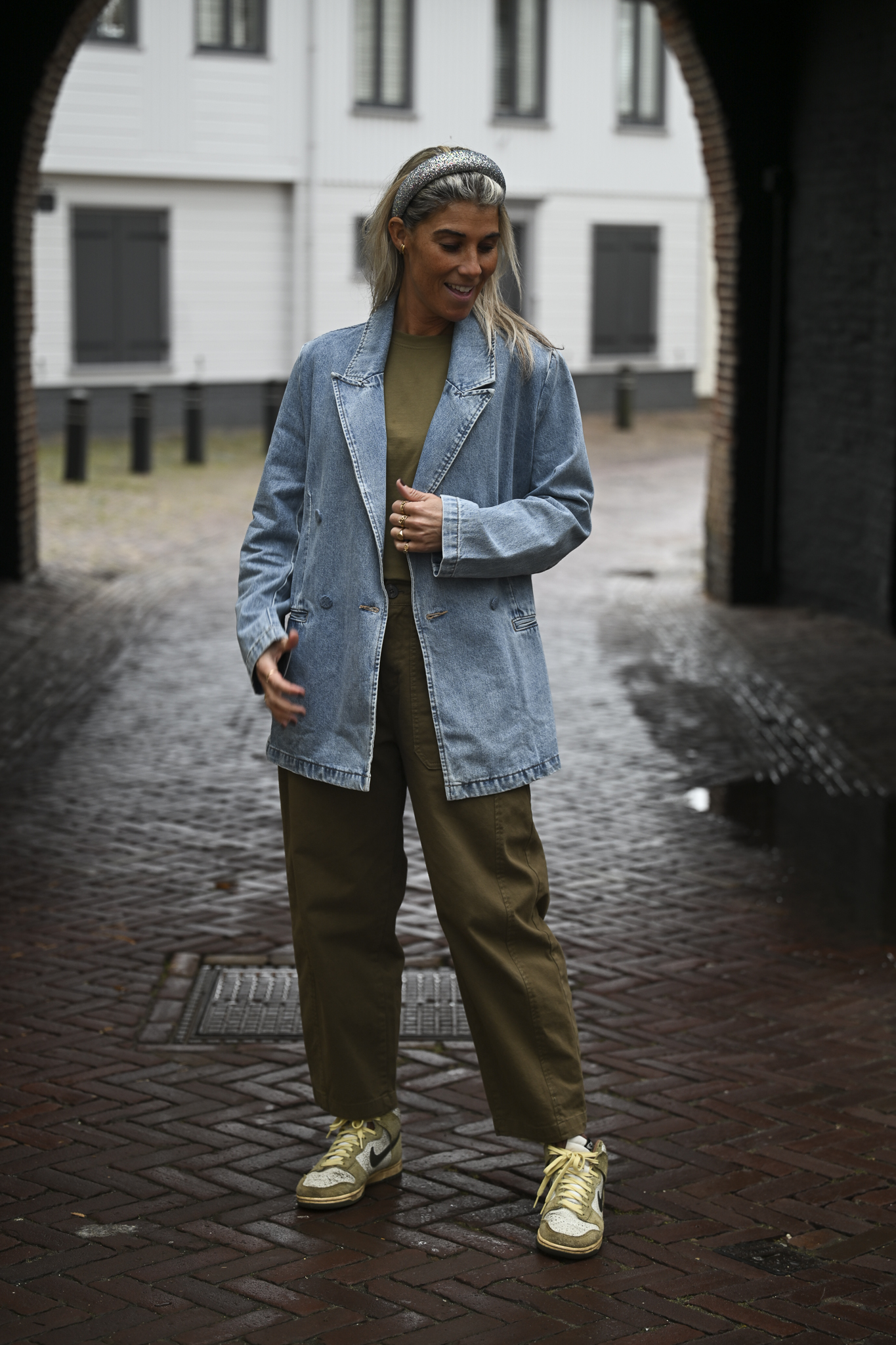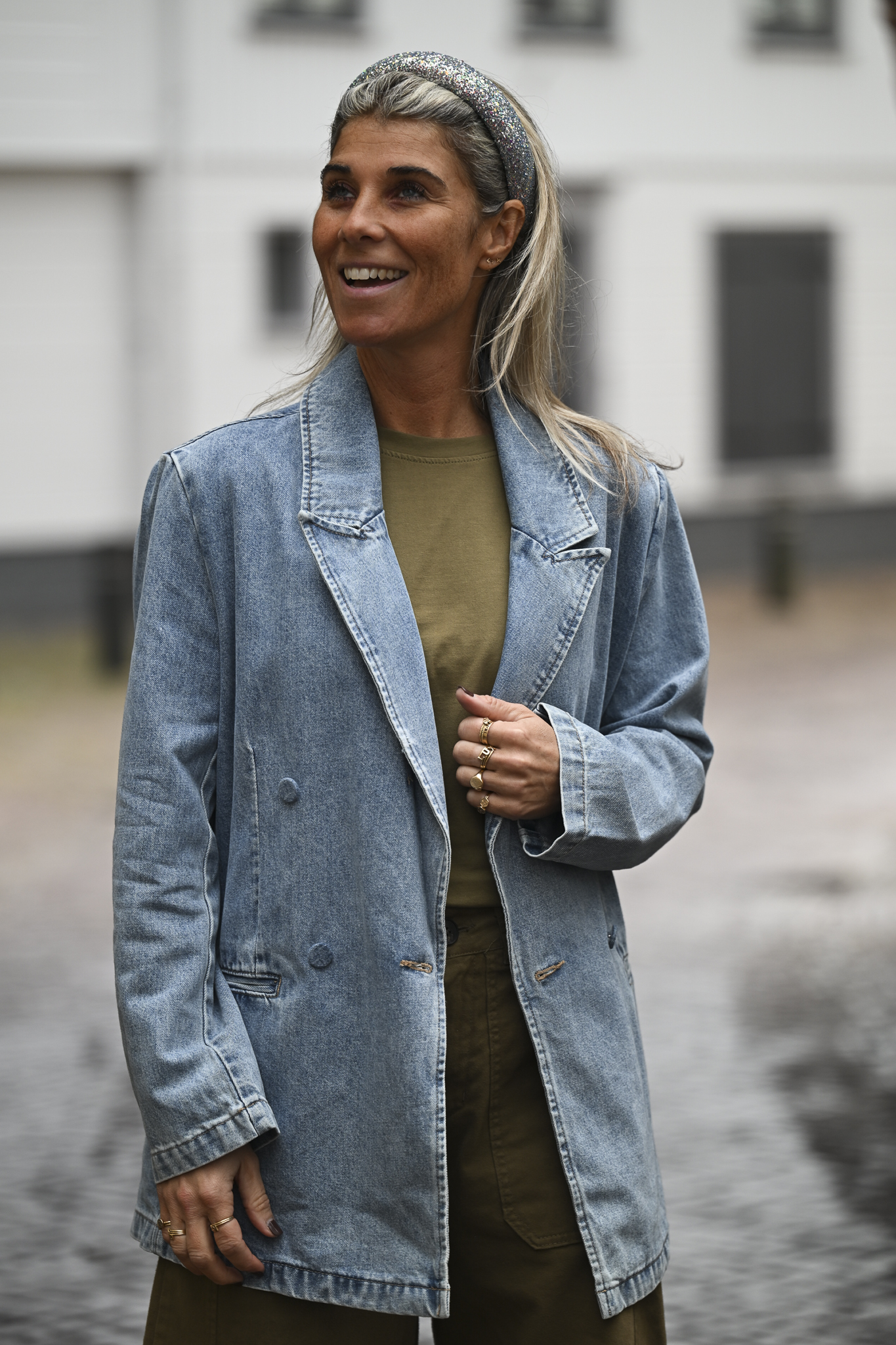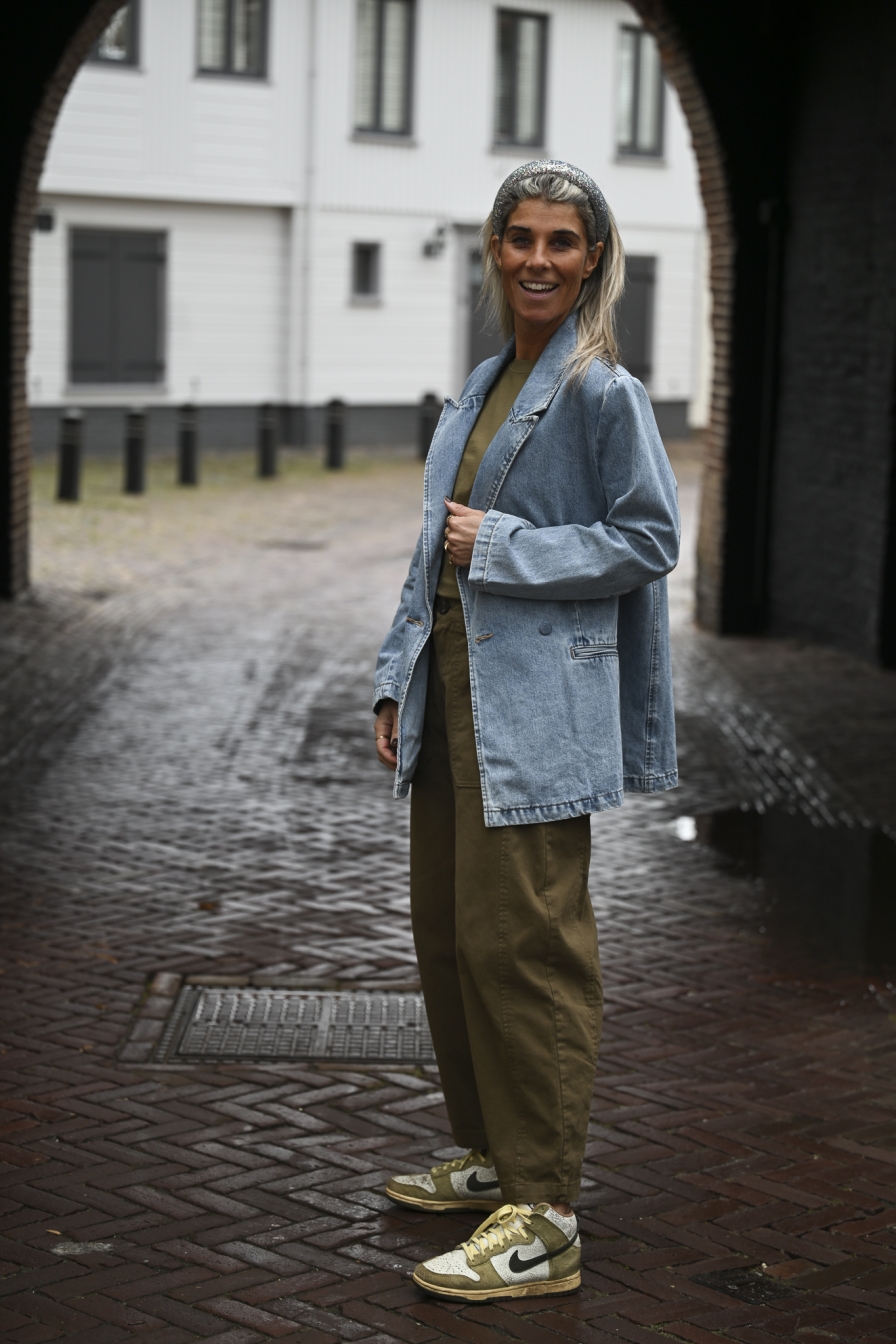 Oversized jeansblazer (98% katoen), verkrijgbaar in maat S/M of L/XL. Op de foto draag ik maat S/M.