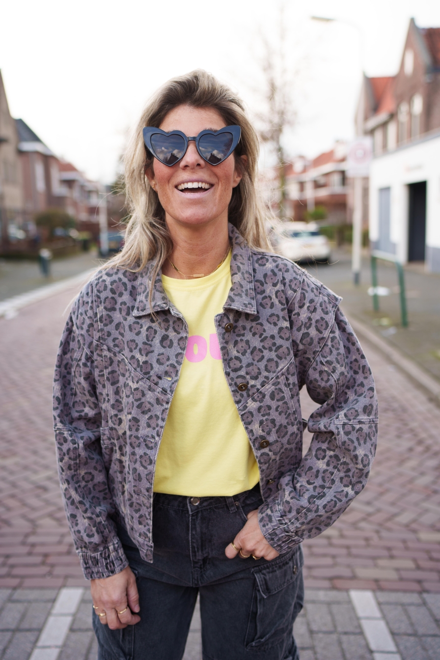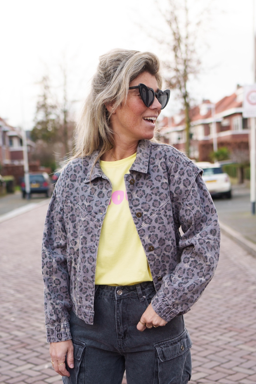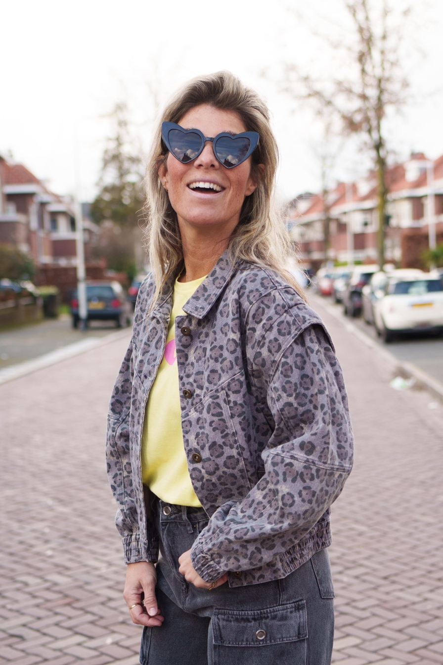 Stoer jeansjack van 100% katoen, met een blauw-grijze puma print! Een statement piece voor een edgy look. Ik ben 1,76 en draag maat S.