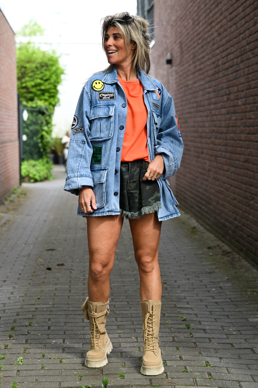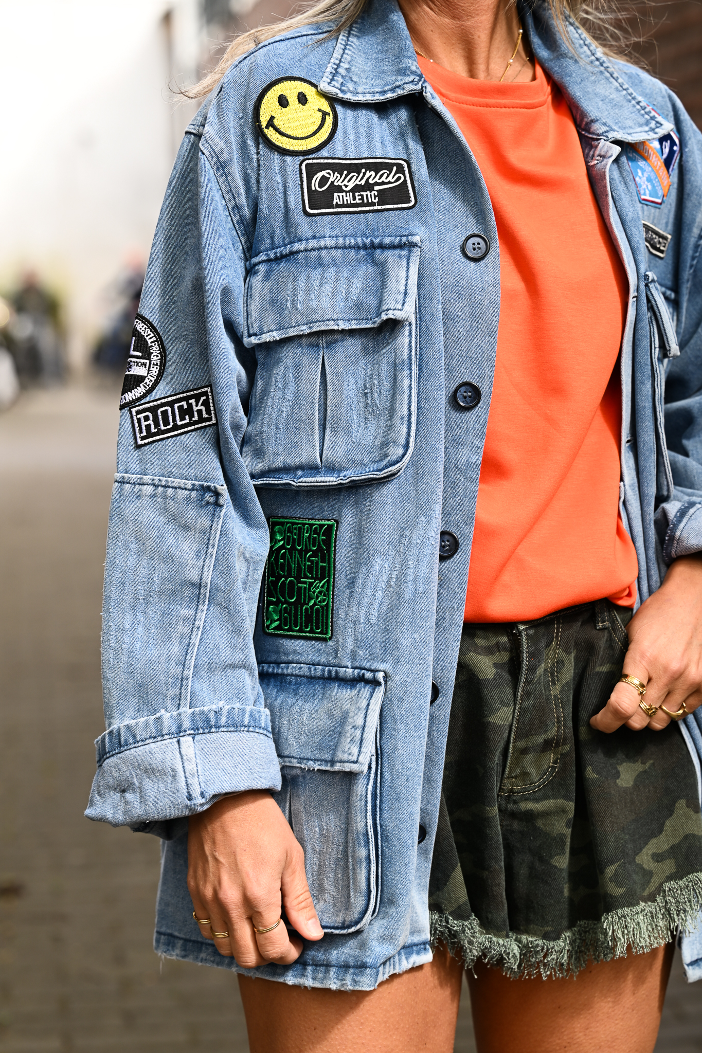 Heel tof Oversized jeans jack met applicatie batches! Past overal overheen en pimt alles op!
