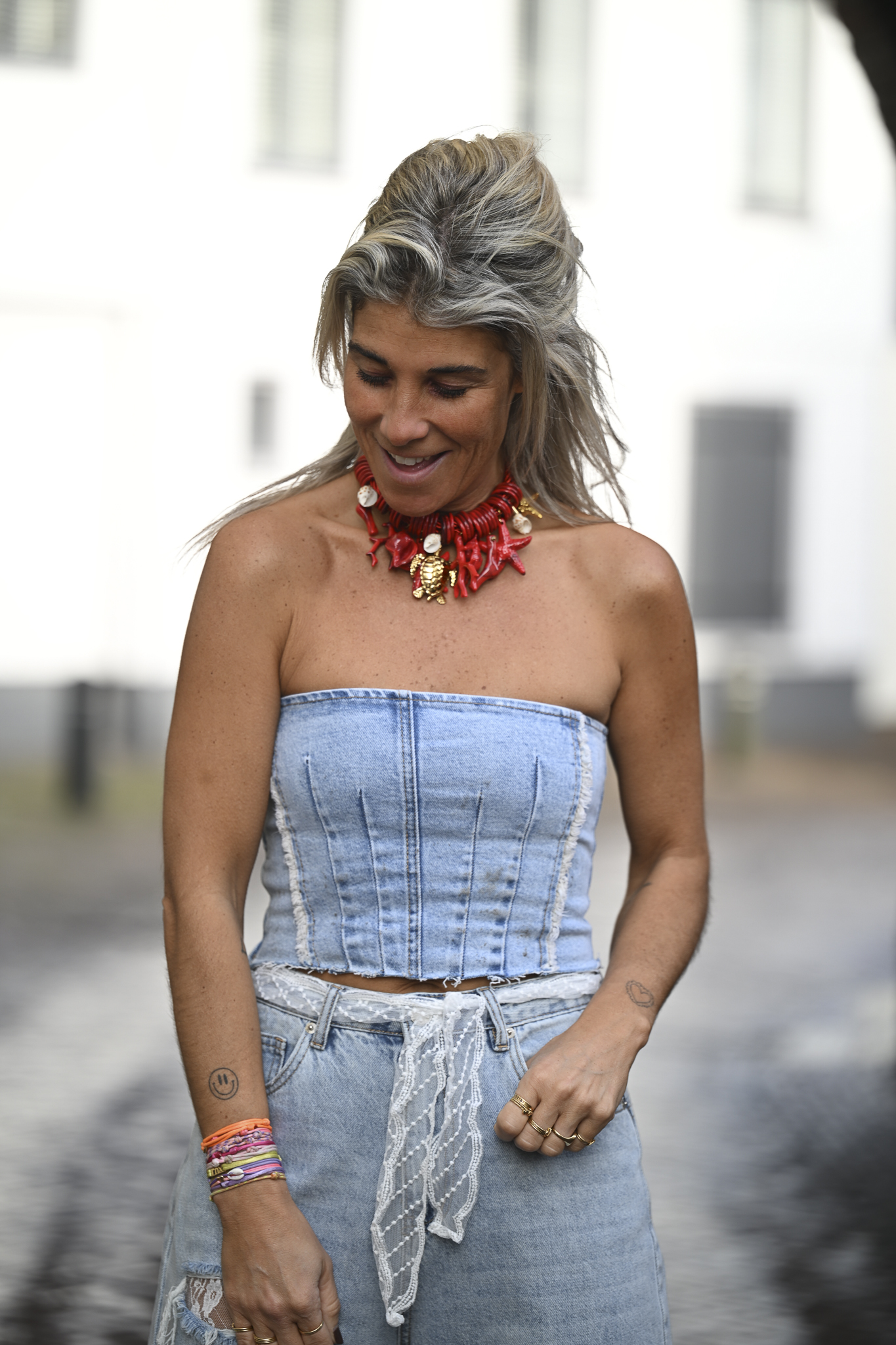 Jeans Top Fee heeft een elastische band aan de achterkant en een ritsje aan de zijkant. Op de foto draag ik maat S. Deze top is voornamelijk geschikt voor fashionista’s met een kleinere cupmaat.
