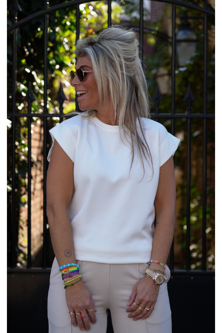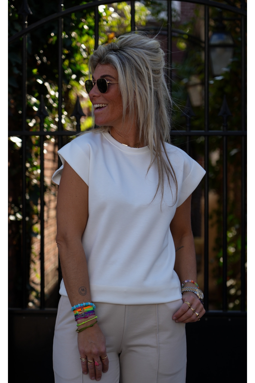 Verzending met DHL !Kapmouwshirt Yasmine Wit