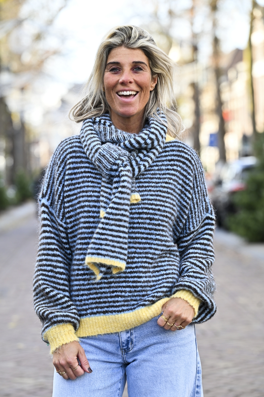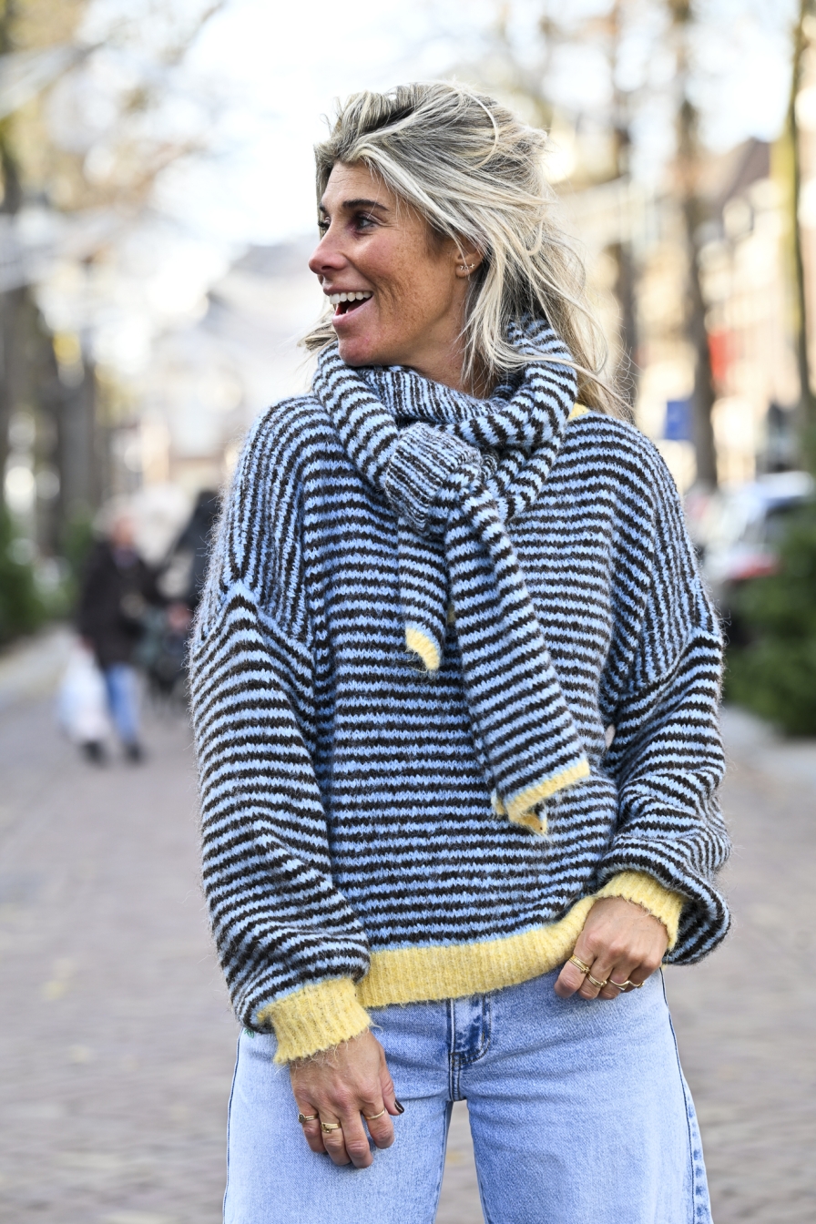 Lekker zachte sjaal, perfect in kleur bij Trui Tess Blauw - Choco, onesize en super comfy.