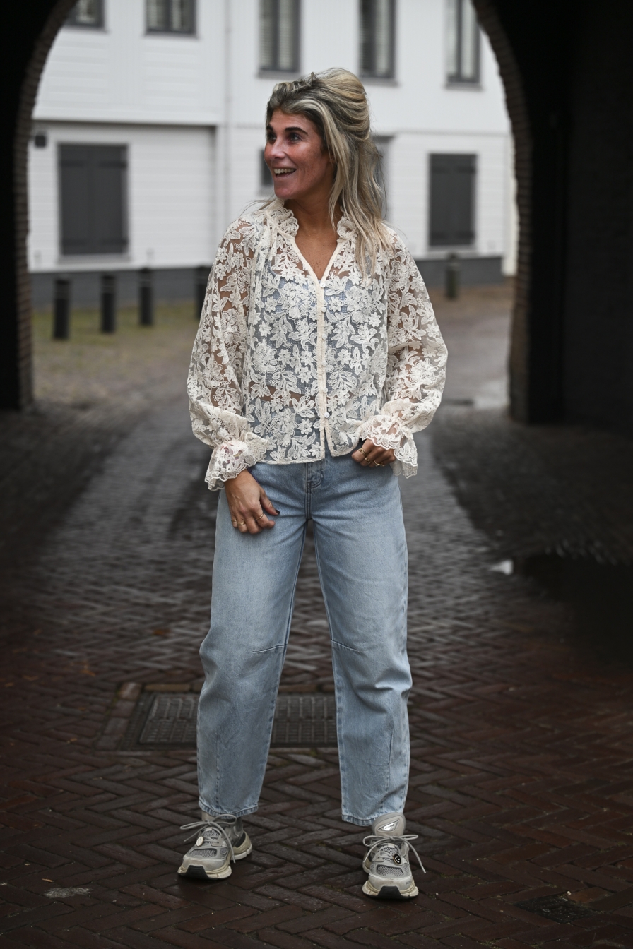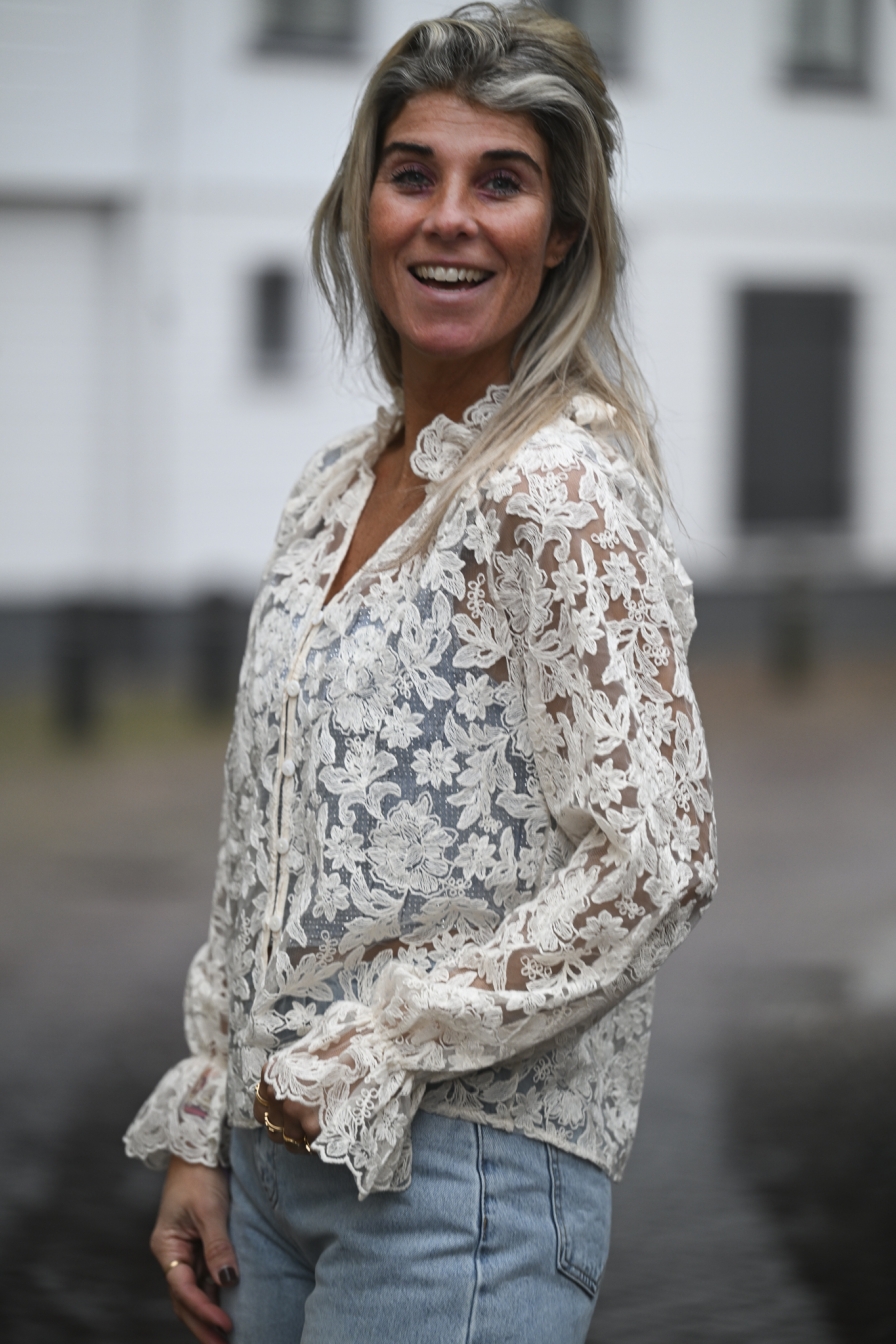 Nog 5 op voorraadVerzending met DHL !Lace Blouse Maddy Beige