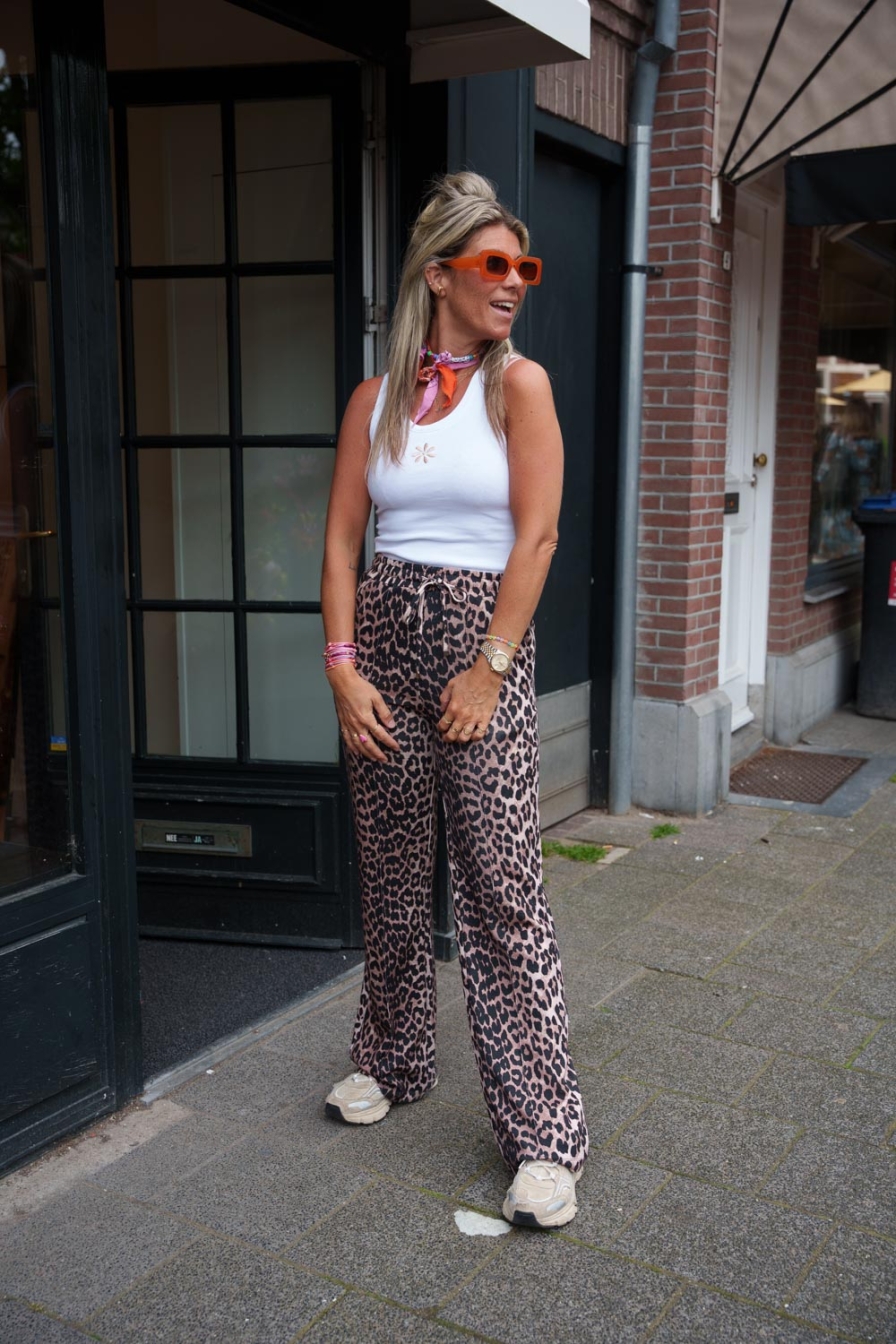 Leopard look met Wide leg broek Mila, voorzien van stevige stiekband en aantrekkoord! Gemaakt van 55% viscose en 5% elastane voor die...