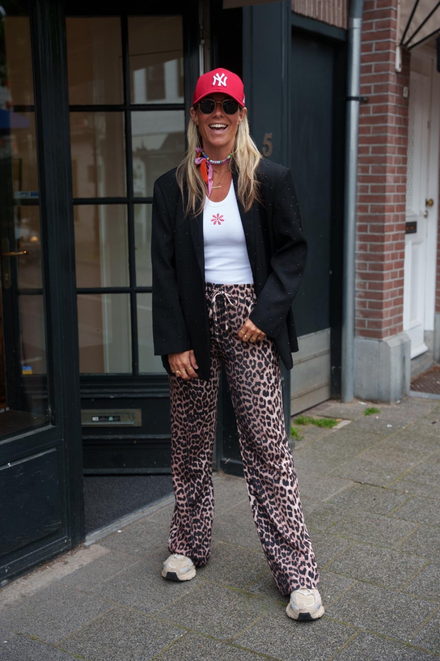 Leopard look met Wide leg broek Mila, voorzien van stevige stiekband en aantrekkoord! Gemaakt van 55% viscose en 5% elastane voor die perfecte stretch. Deze stof voelt heerlijk zacht aan op de huid. Bij mijn lengte van 1,76 m draag ik een maat m van deze broek.