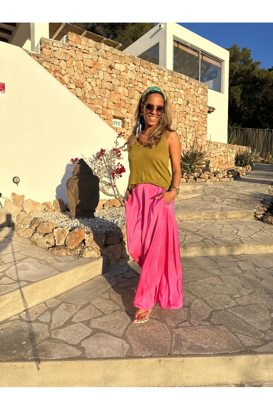 Top Es Vedra is gemaakt van 100% linnen, ideaal voor de warme dagen. Het onesize model draag je comfortabel tot en met maat XL.