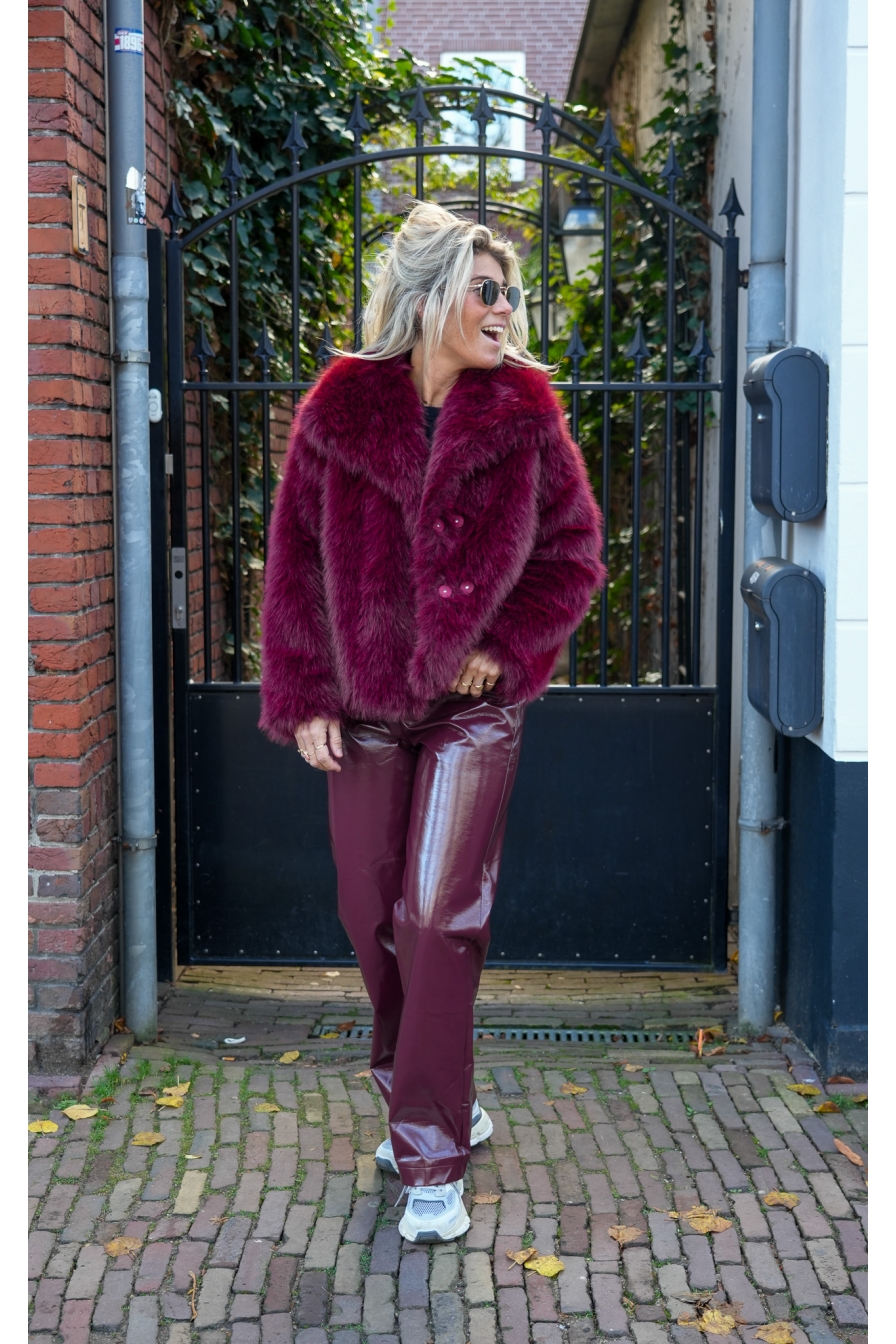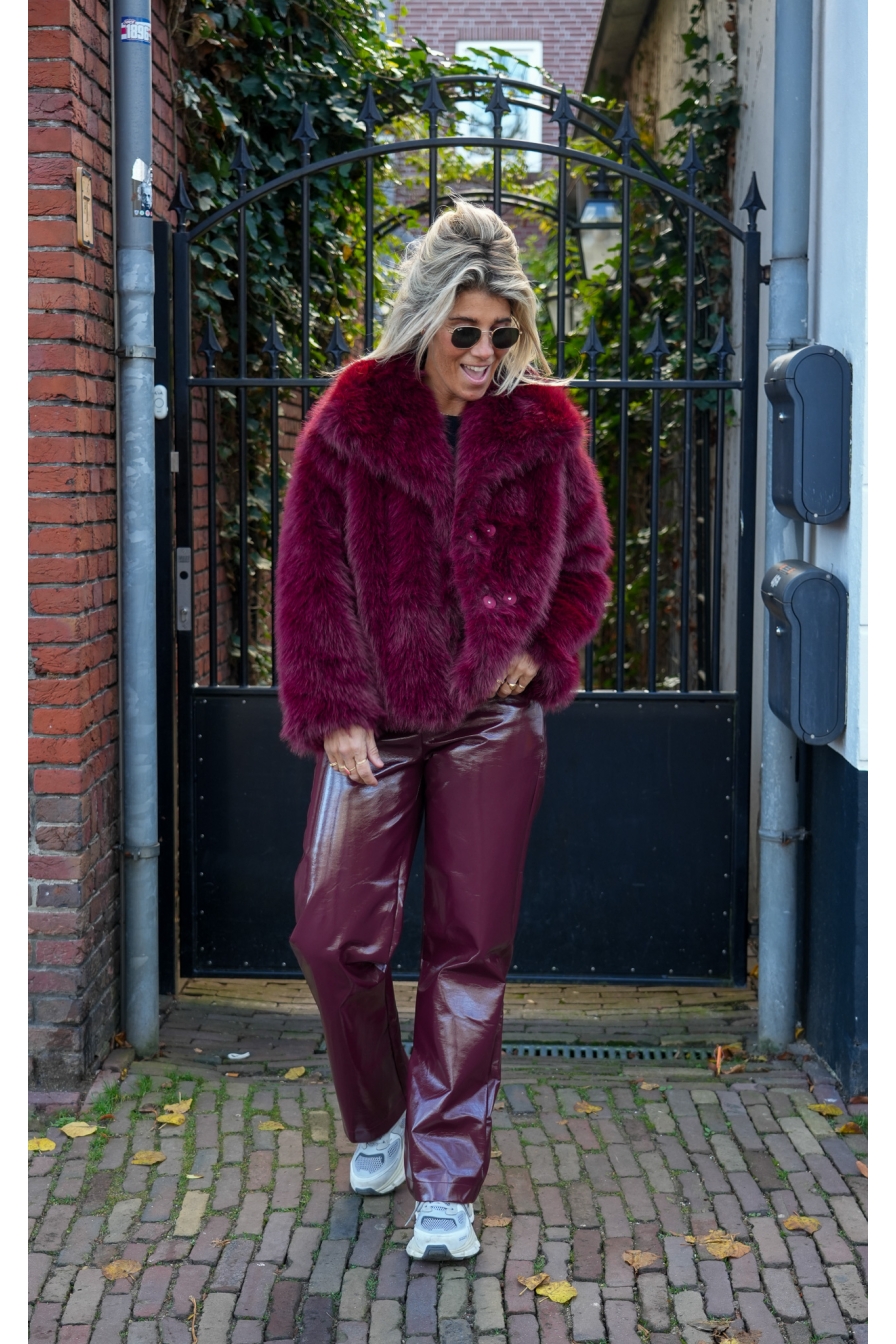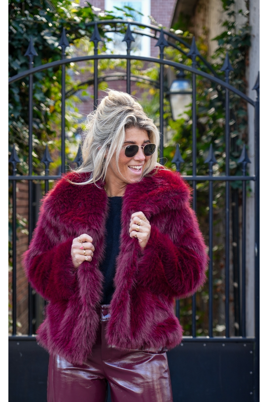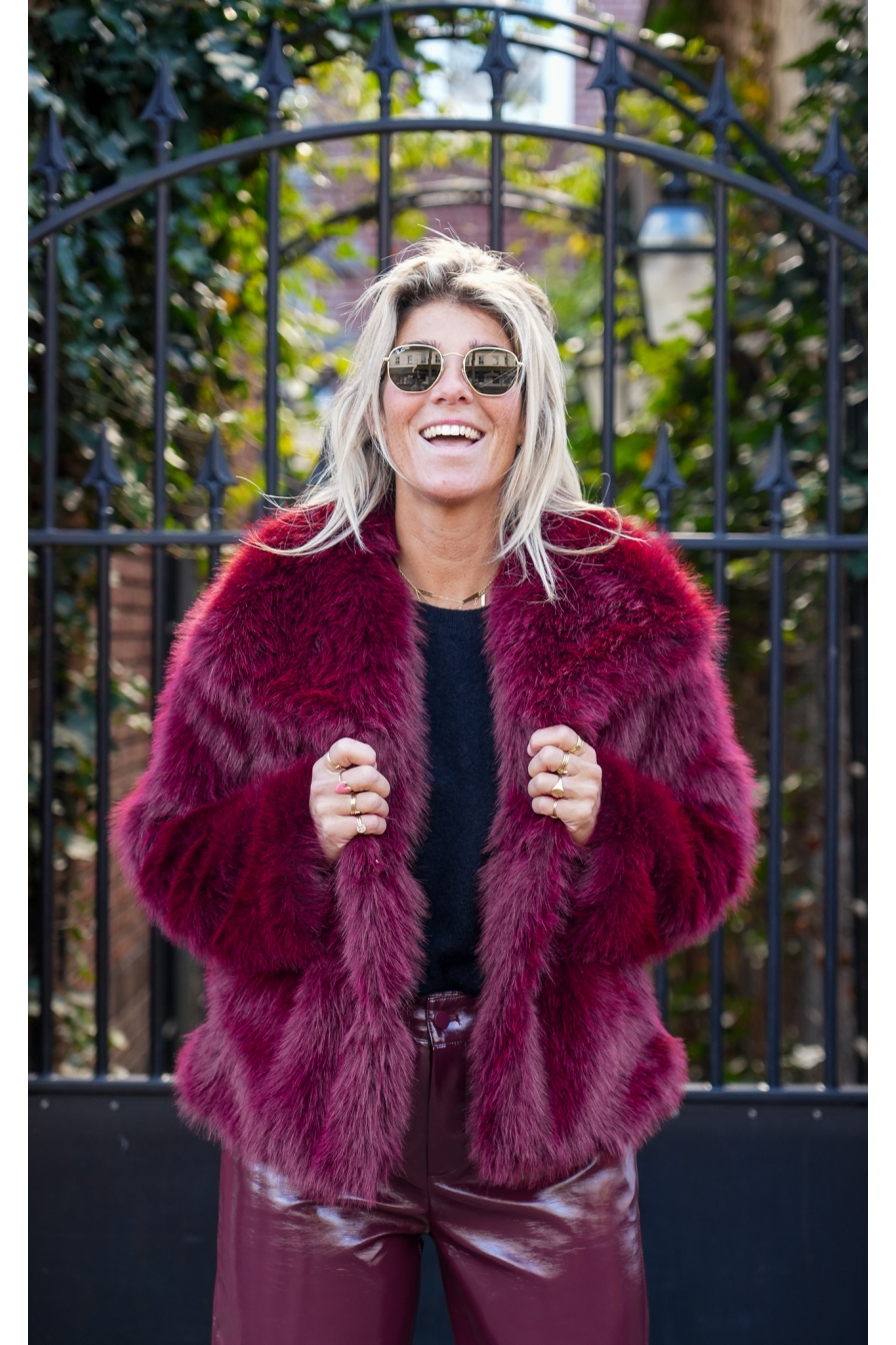 Marianne Manteaux Bordeaux is een stijlvol en chic item dat je look helemaal compleet maakt. Met vier stevige drukknopen en een luxe uitstraling dankzij de faux fur, is dit jasje perfect voor de winterse dagen. Model op de foto draagt maat S/M en is 1,76 lang.