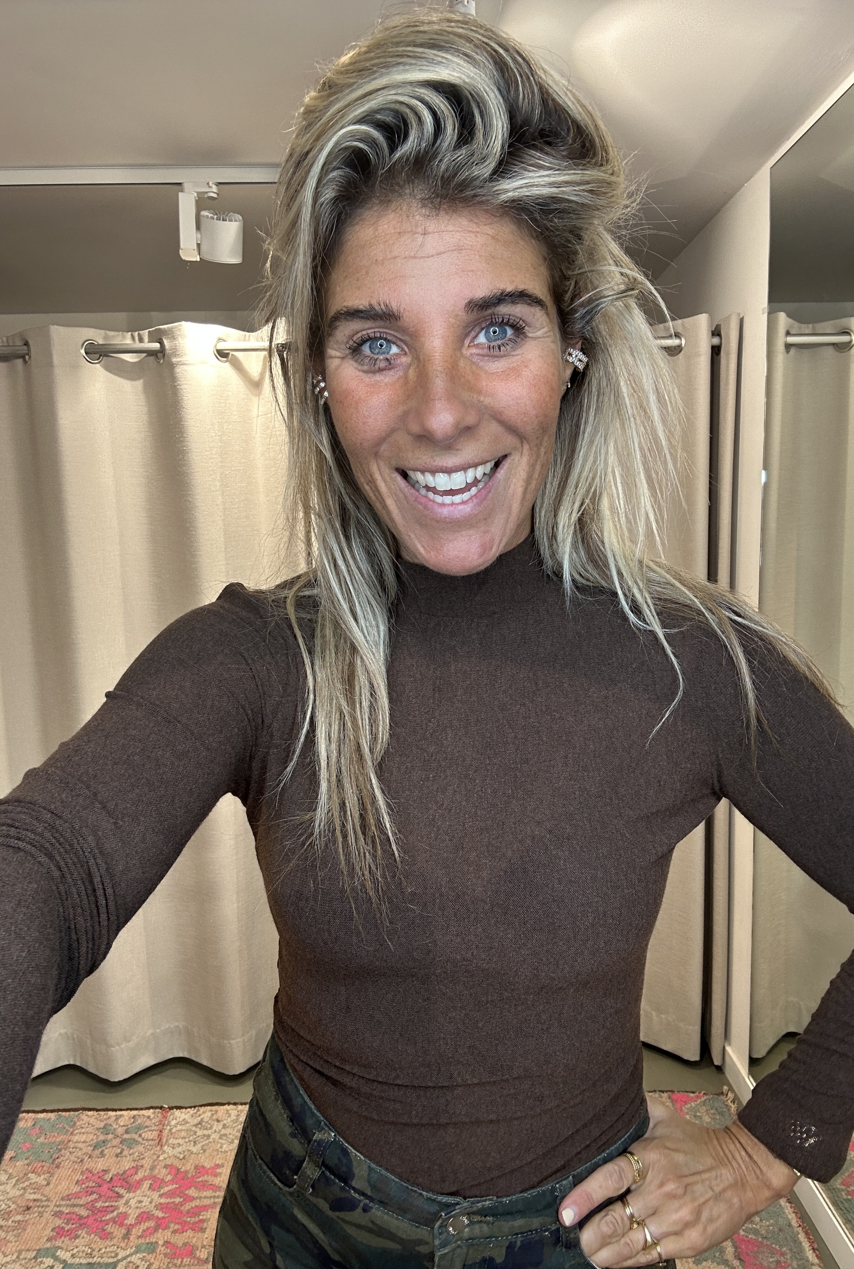 De perfecte basic! Deze mesh top met kleine col draag je moeiteloos onder een colbert of blazer. Licht doorschijnend, zacht en met fijne stretch. Ik draag maat M en ben 1.76m lang.