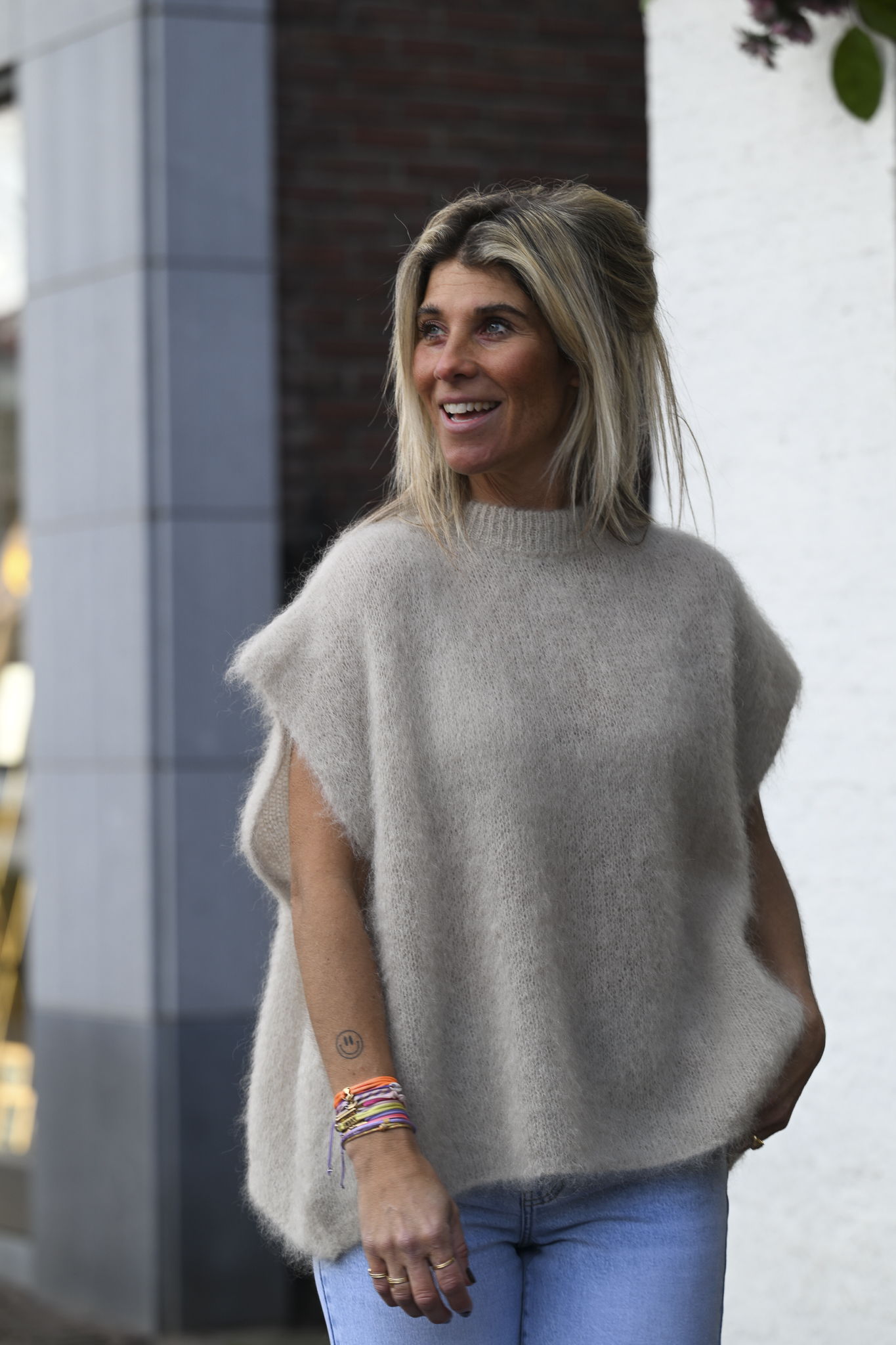 Het oversized gilet Katy van 80% mohair is precies wat we willen! Draag ‘m overal overheen voor een soft touch look. Dankzij het oversized model en de ruime armsgaten draag je deze topper zeker tot maat XL.