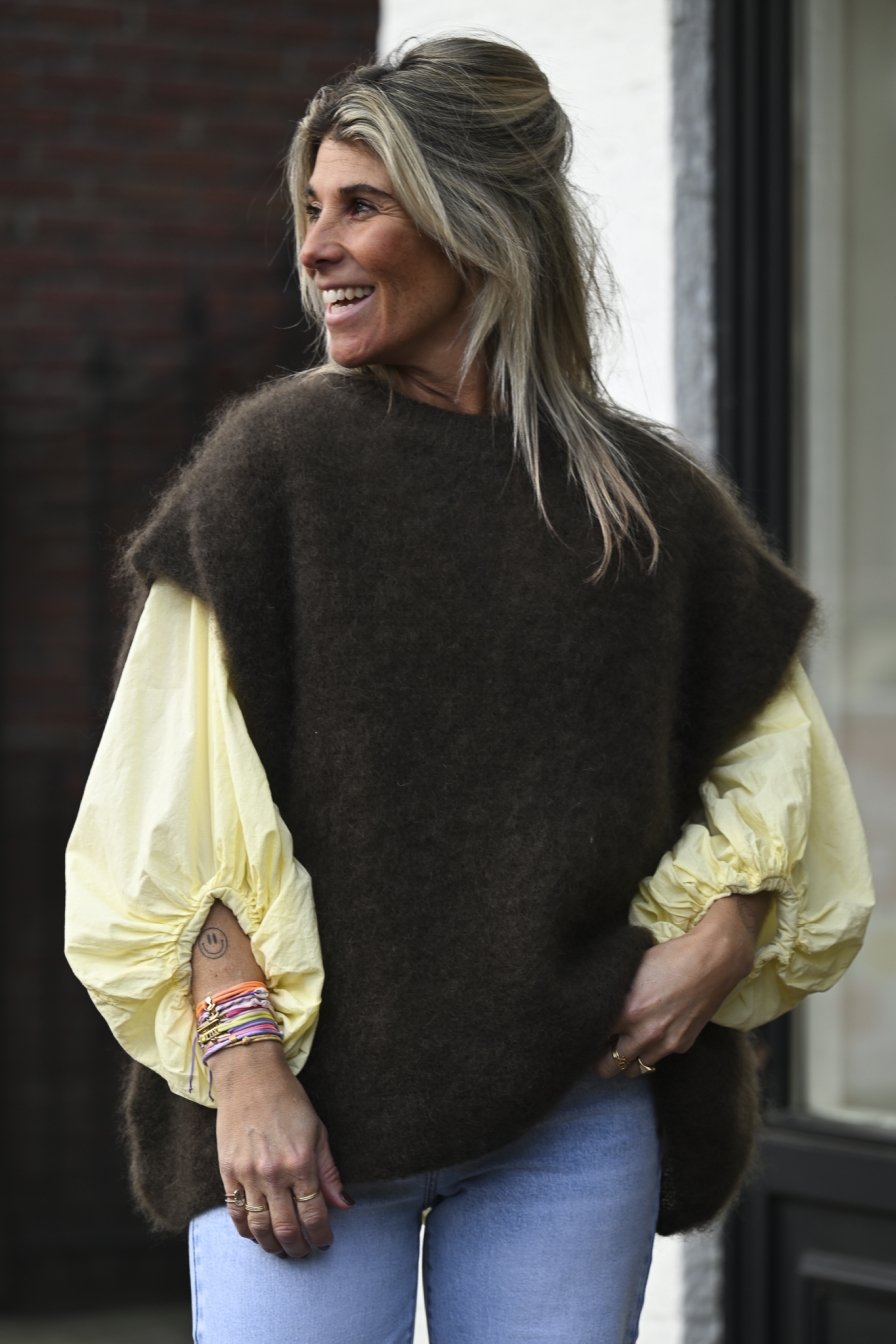 Het oversized gilet Katy van 80% mohair is precies wat we willen! Draag ‘m overal overheen voor een soft touch look. Dankzij het oversized model en de ruime armsgaten draag je deze topper zeker tot maat XL.