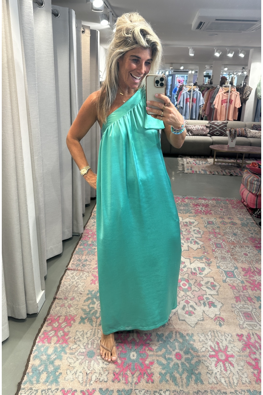 Verzending met DHL !Off Shoulder Dress Max Turquoise