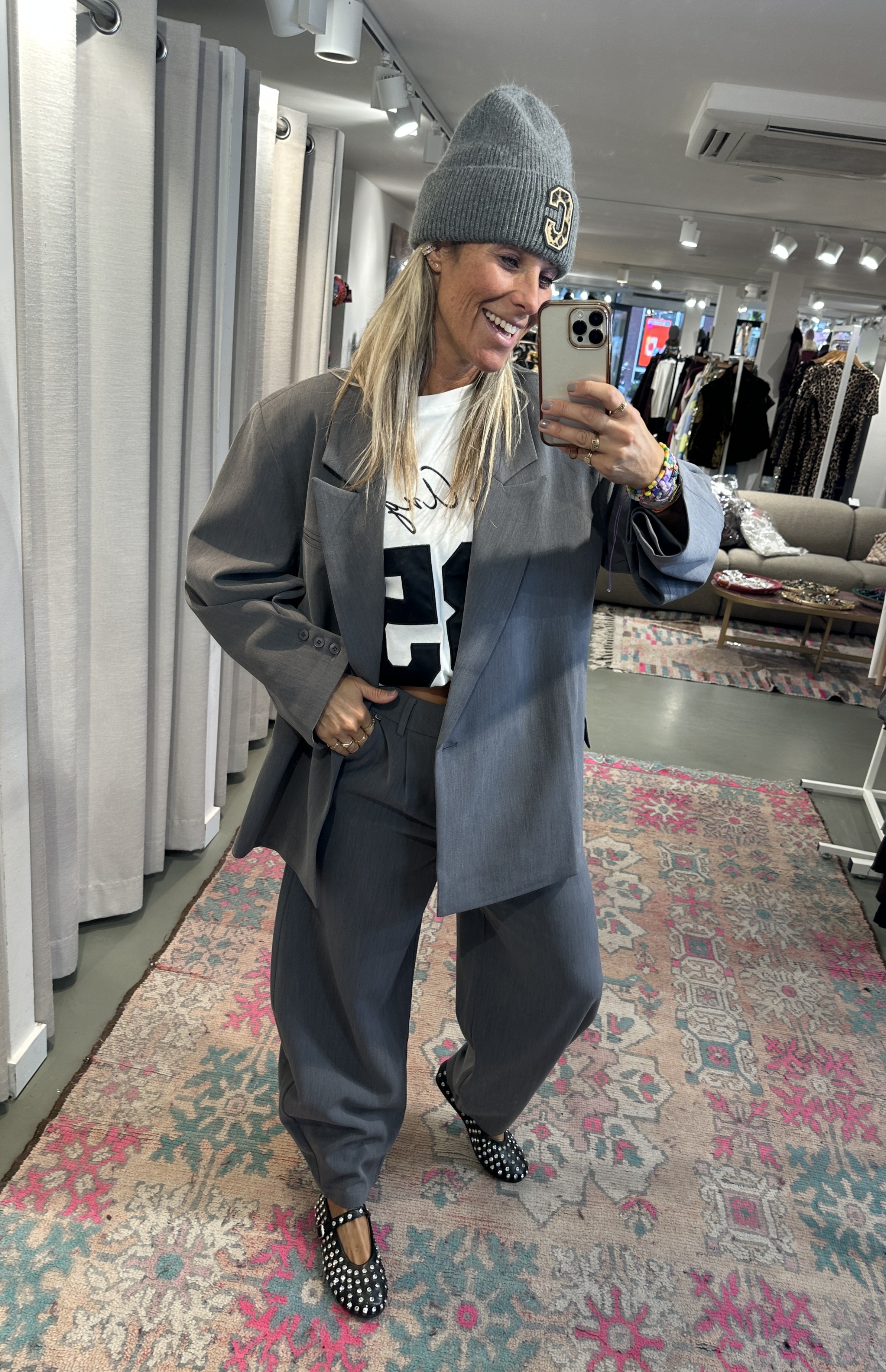 Deze onesize oversized blazer is een echte eyecatcher dankzij het unieke detail aan de mouw. Een key-piece dat elke outfit compleet maakt. Het onesize model is draagbaar tot en met maat 44/46.