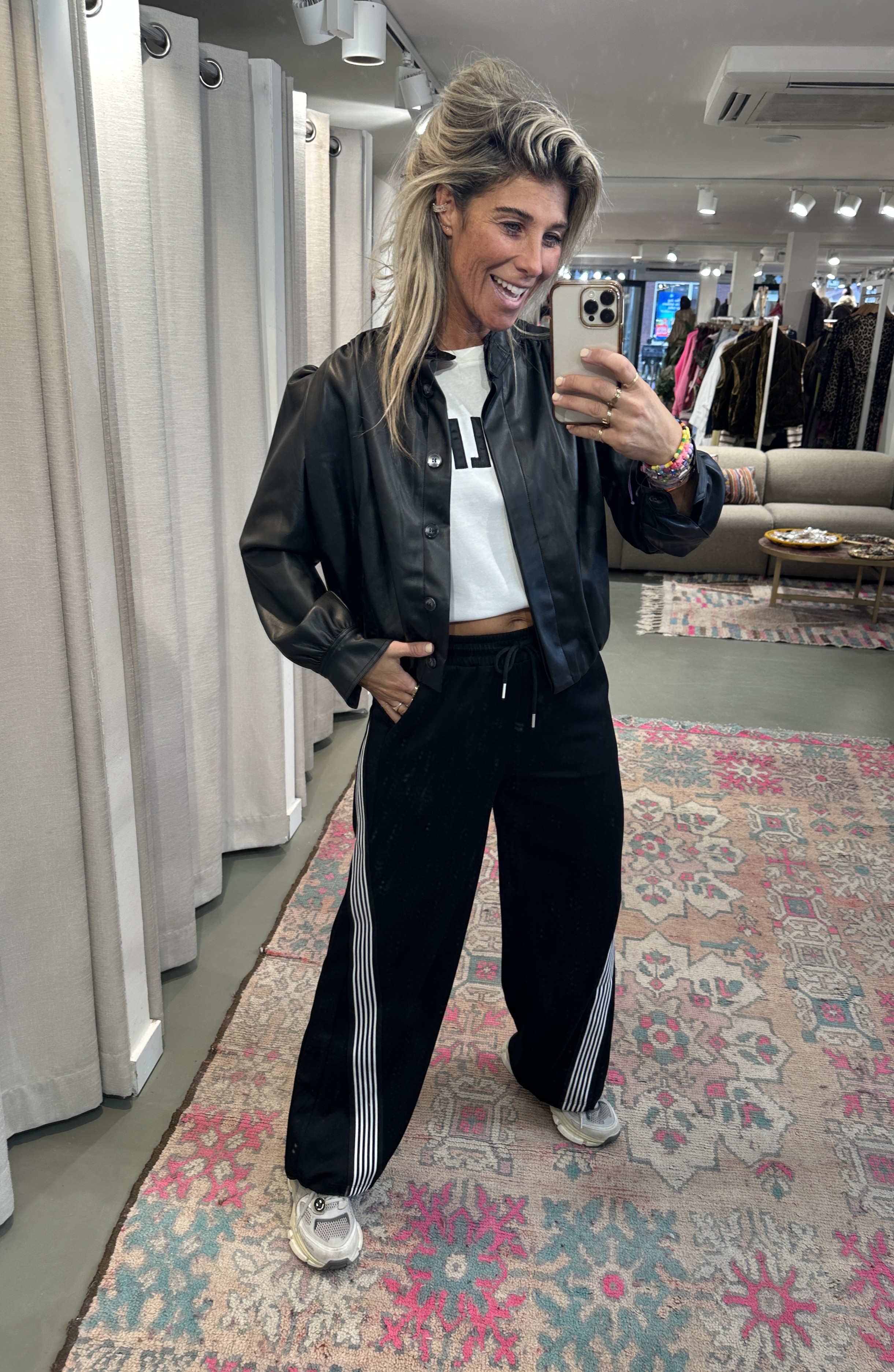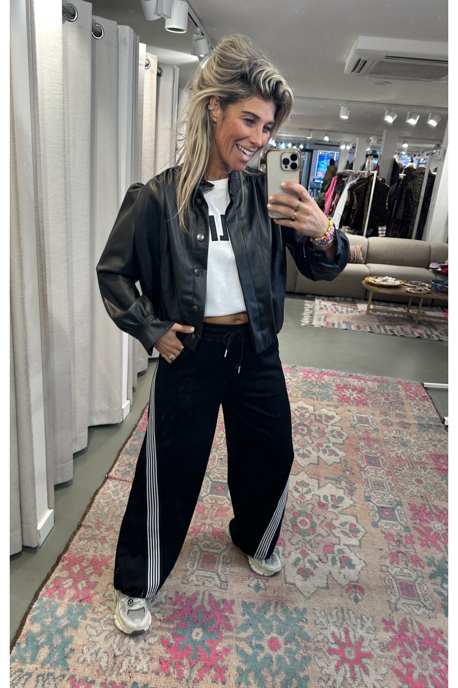 Stop met zoeken, deze broek moet je proberen. Hij heeft alles wat goed en fijn is: jogging softheid, steekband met aantrekkoord, steekzakken en een zwart-witte twisted band. Het straight leg model heeft aan de onderkant een aantrekkoord, zodat je de pijpen strakker kunt maken als je wilt. OP de foto draag ik maat S/M (1.76)