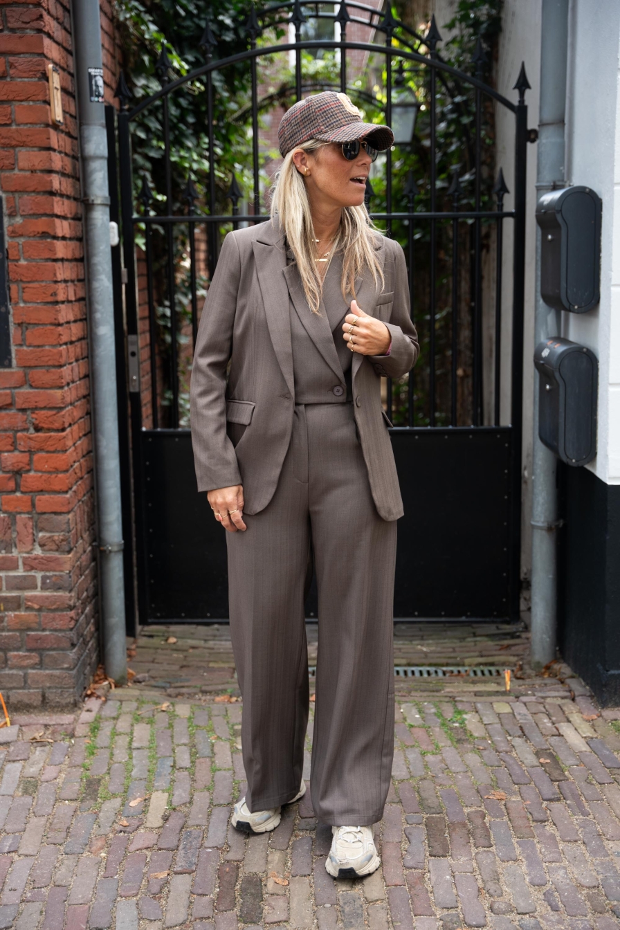 Deze musthave pantelon kun je eindeloos combineren met de gilets en blazers. De broek valt goed op maat , ik draag maat M en ben 1.76...