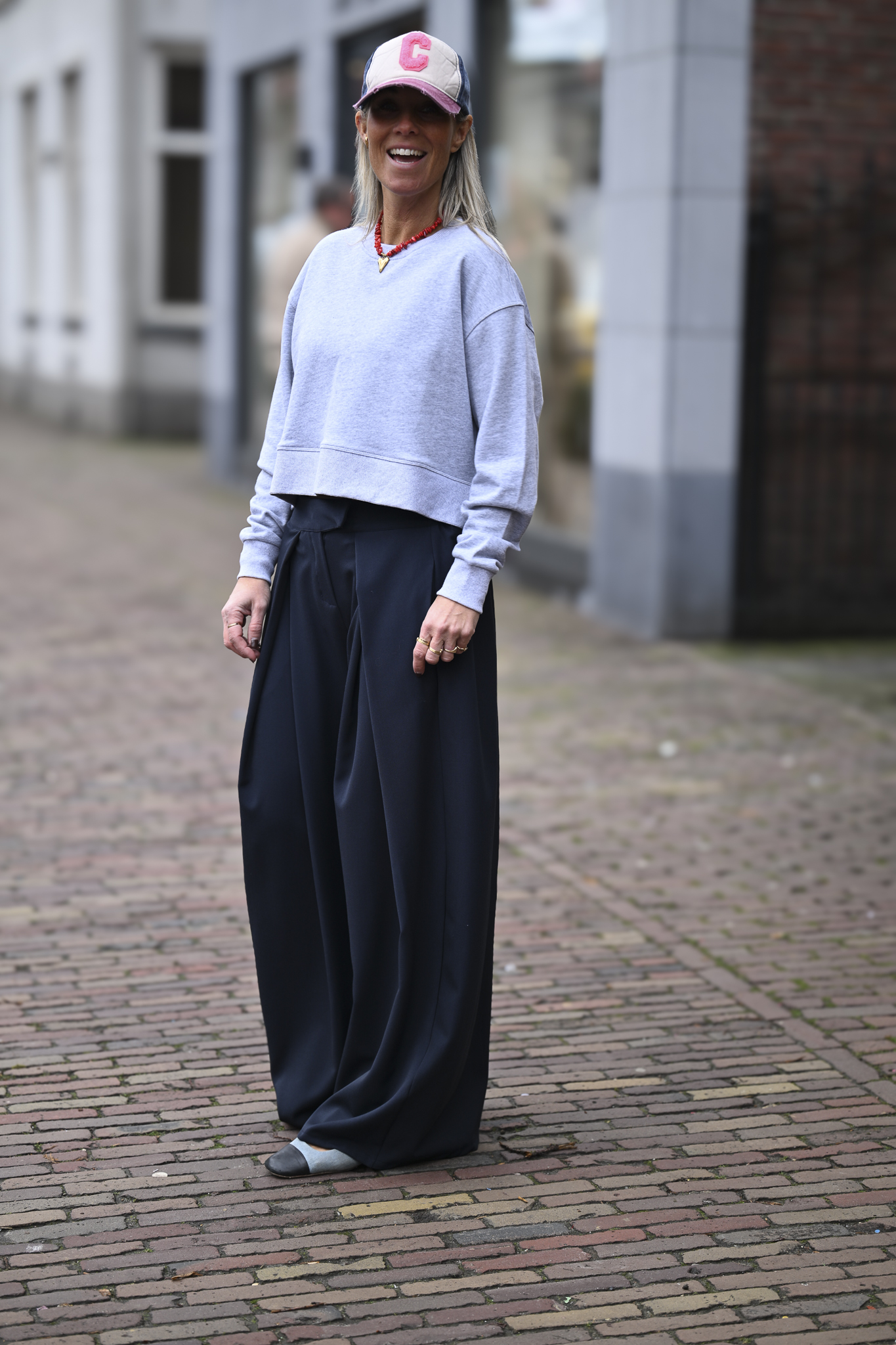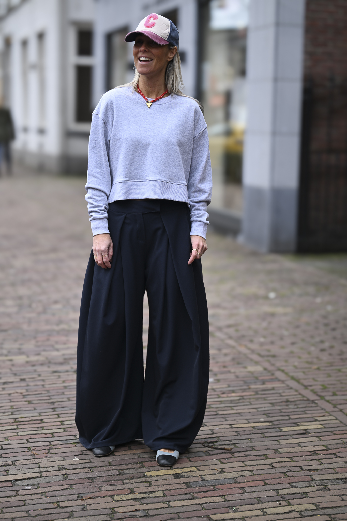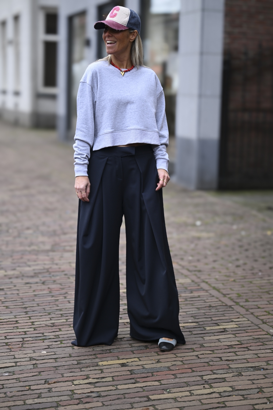 Deze palazzo pantalon valt lekker wijd en zit supercomfy. Dankzij de elastische tailleband past hij van S/M tot XL, en de lange, wijde pijpen geven volop bewegingsvrijheid. Twee steekzakken en de plooien aan de voorkant maken hem helemaal af. Ik ben 1.76 m lang, zo kun je goed inschatten hoe hij bij jou qua lengte valt.