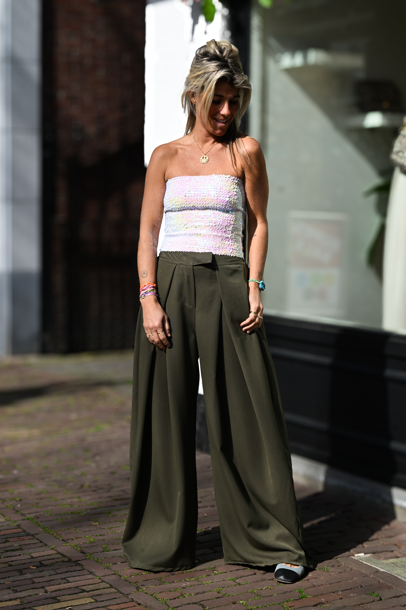 Verzending met DHL !Pantalon Palazzo Mosgroen