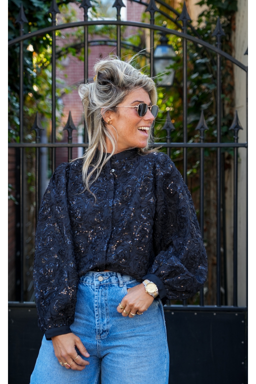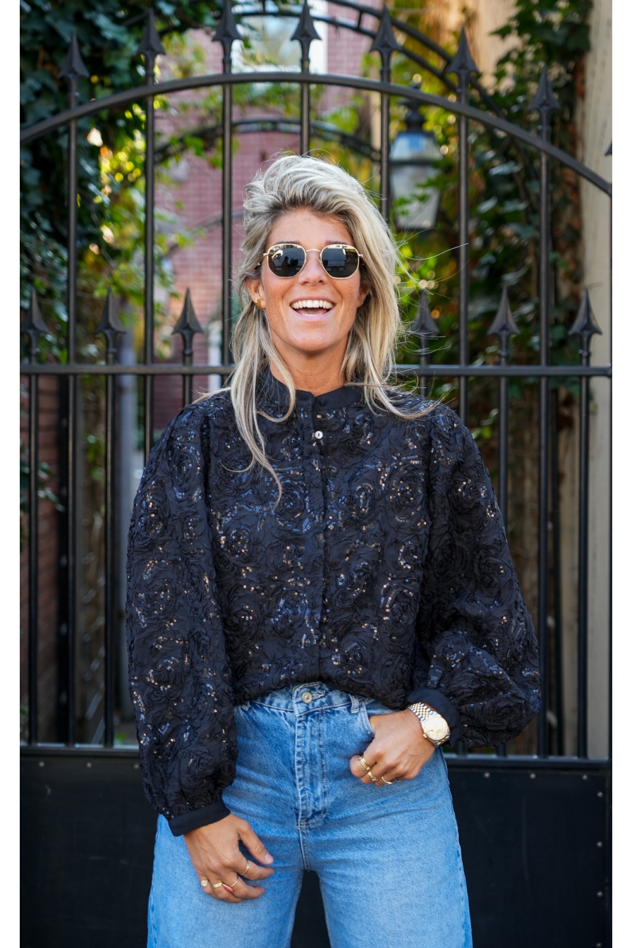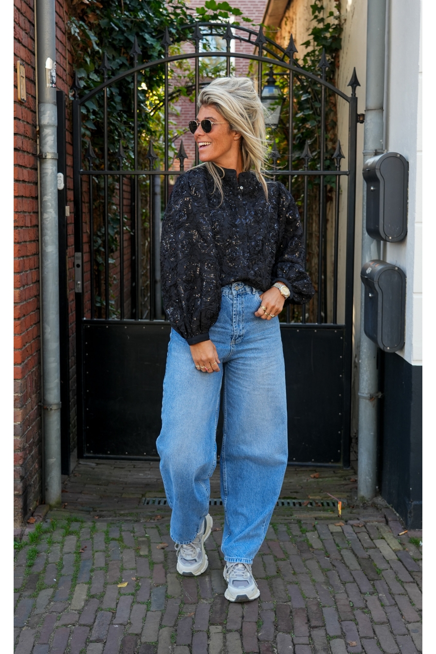 Heerlijk Blouse met pofmouw, valt goed op maat , ik draag maat S en ben 1.76 lang.
