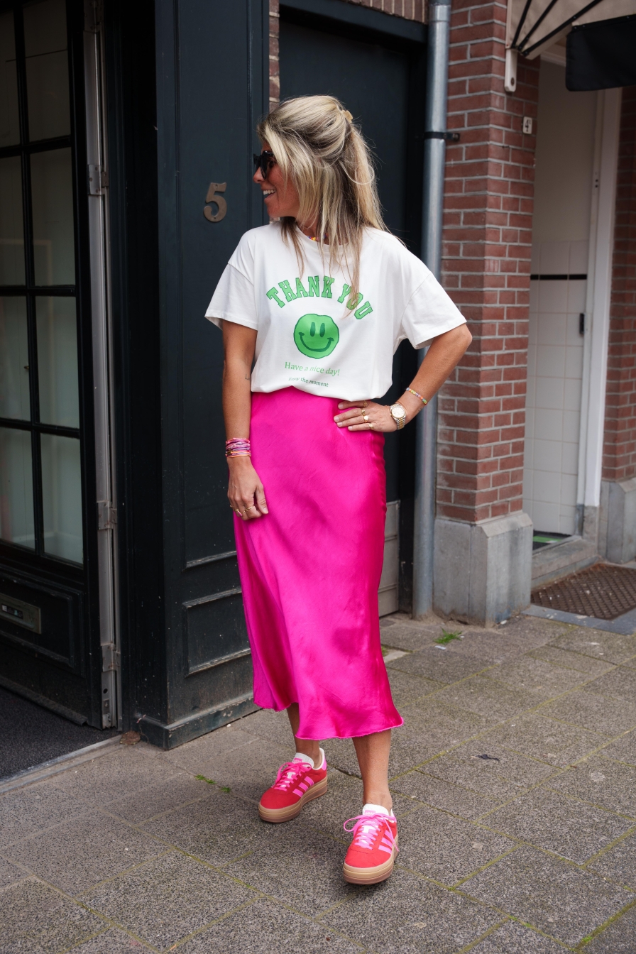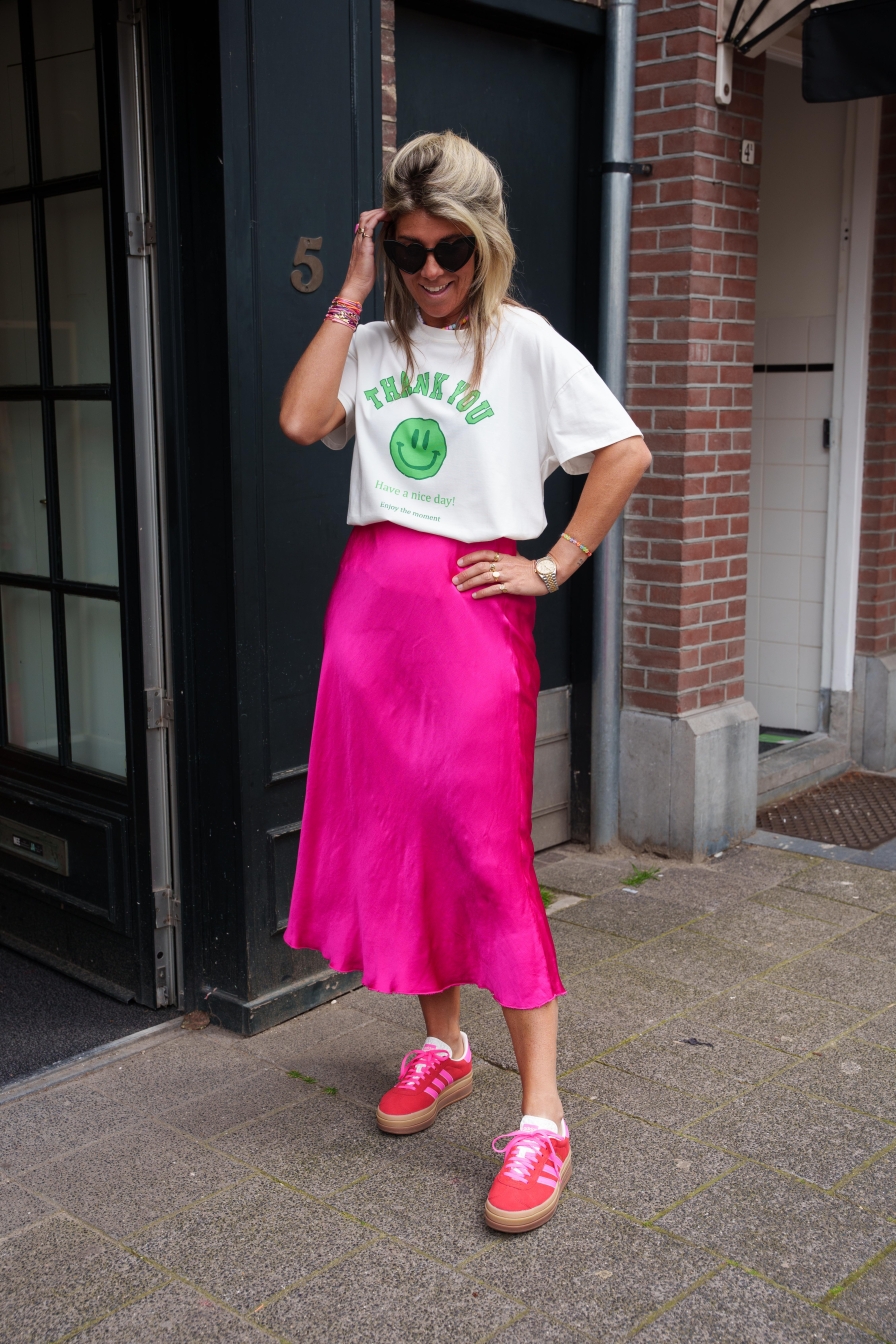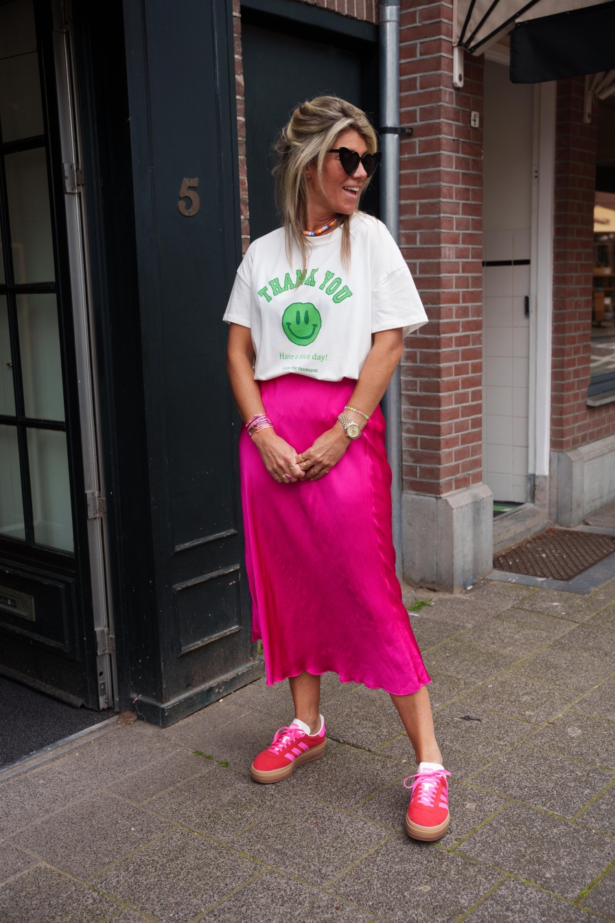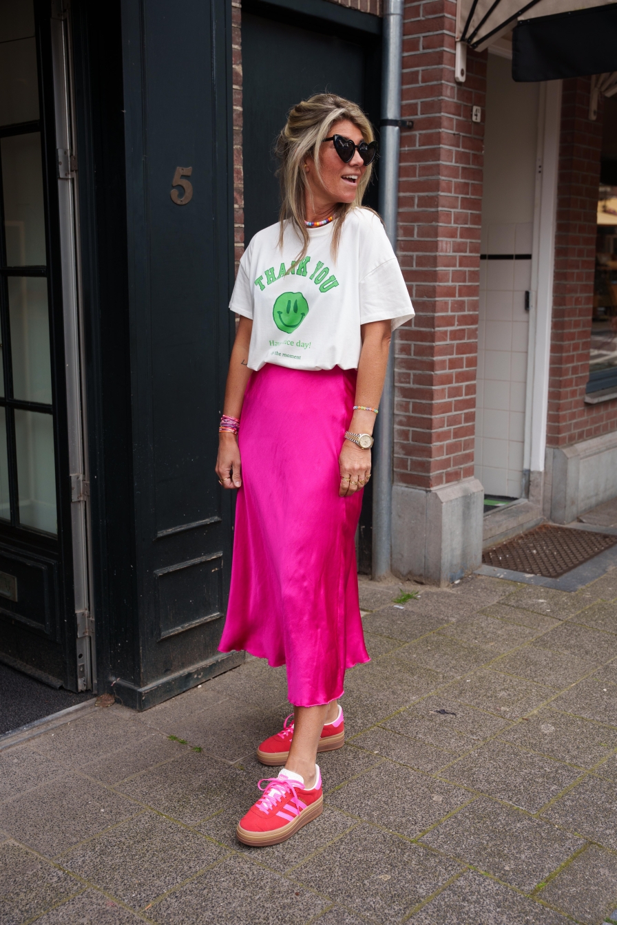 Rok Cessy is gemaakt van 100% viscose en straalt een stijlvolle zijde-look uit. Deze topper heeft een brede elastische tailleband en een lengte van 90 cm. Dit onesize model draag je tot en met maat L/XL.