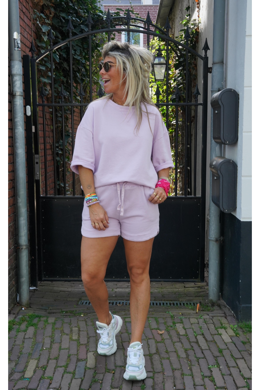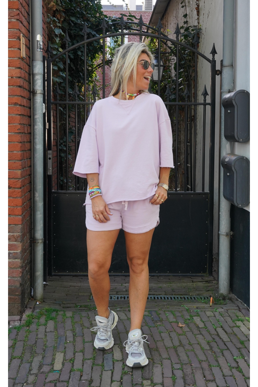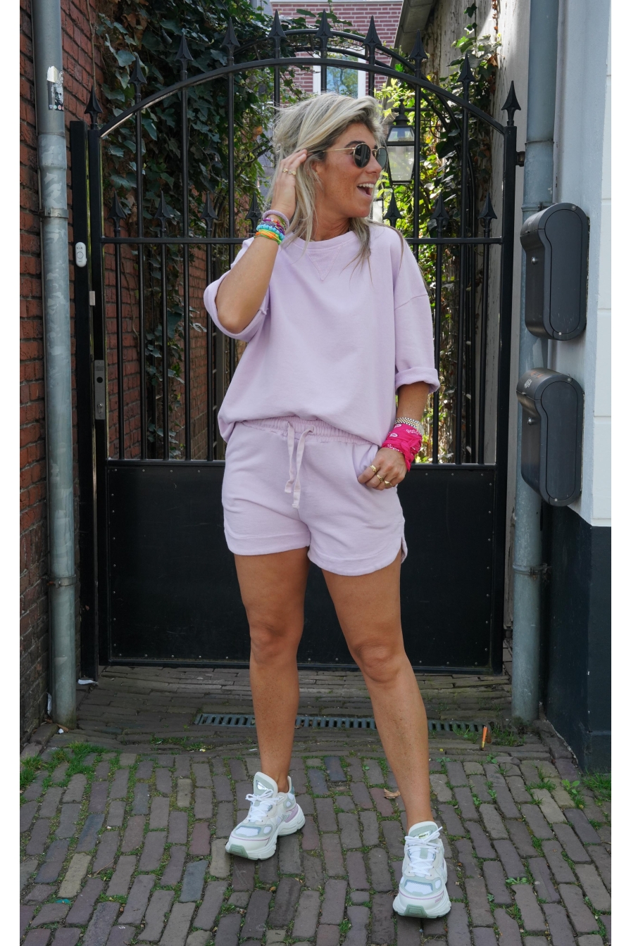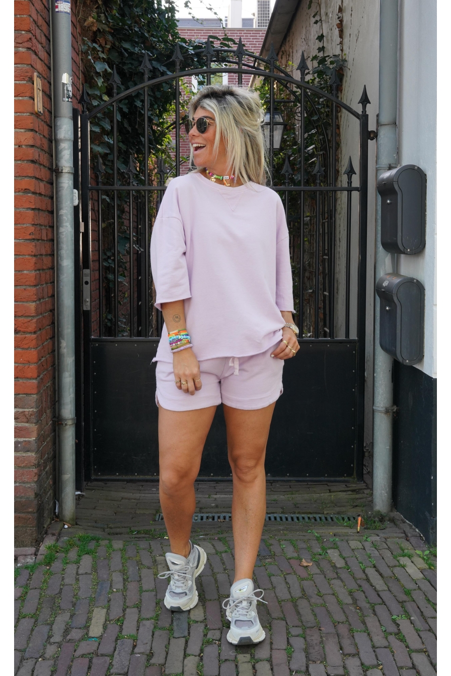 Comfort meets style! Set Fabienne is gemaakt van 100% katoen en voelt superzacht aan op je huid. De top heeft 3/4 mouwen en een ronde hals, het short is voorzien van 2 steekzakken en een aantrekkoord voor de perfecte pasvorm. Deze comfi topper is een Onesize model met stretch en draagbaar tot maat XL. Trust us, je wilt hier in wonen!