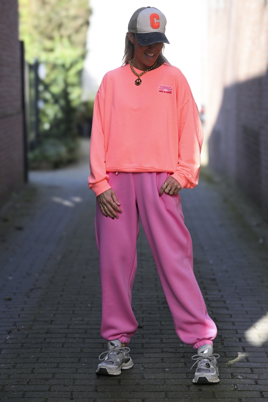 OMG, deze combiset wil je! Hij bestaat uit een superzachte sweater en een colourful jogging . Beide items zijn onesize en draagbaar tot en met maat L/XL.
