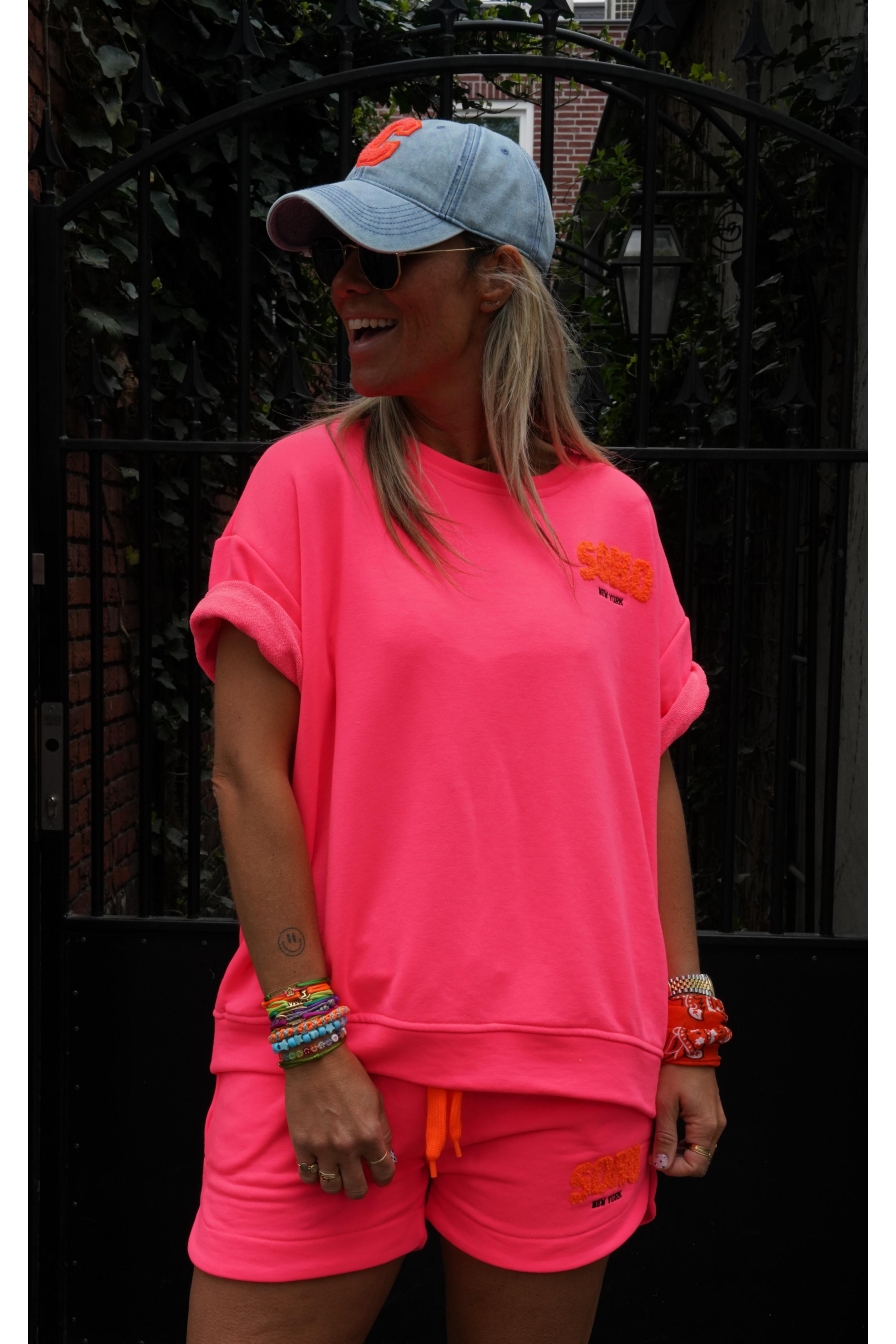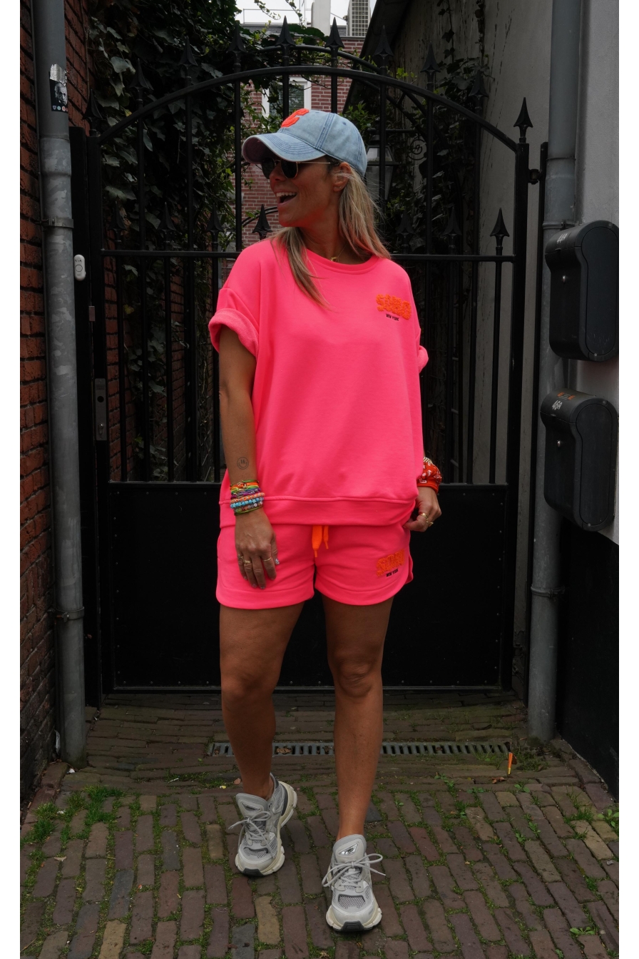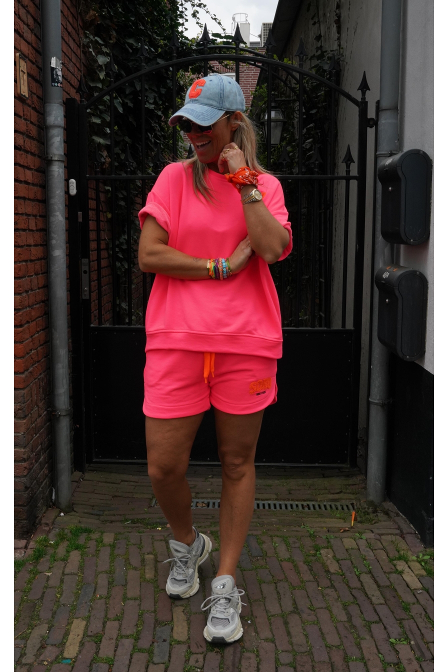 Deze comfy set bestaat uit een onesize short met neon aantrekkoord én het bijpassend shirt. Gemaakt van 80% katoen voor de ultieme voorjaar look! Draagbaar t/m maat L/XL