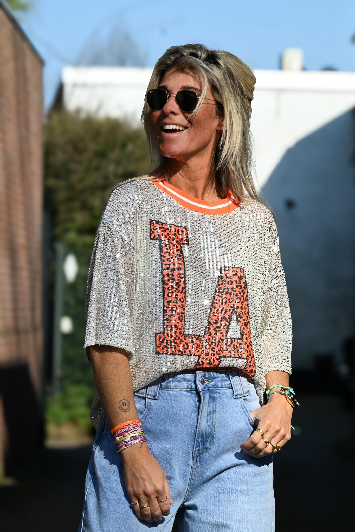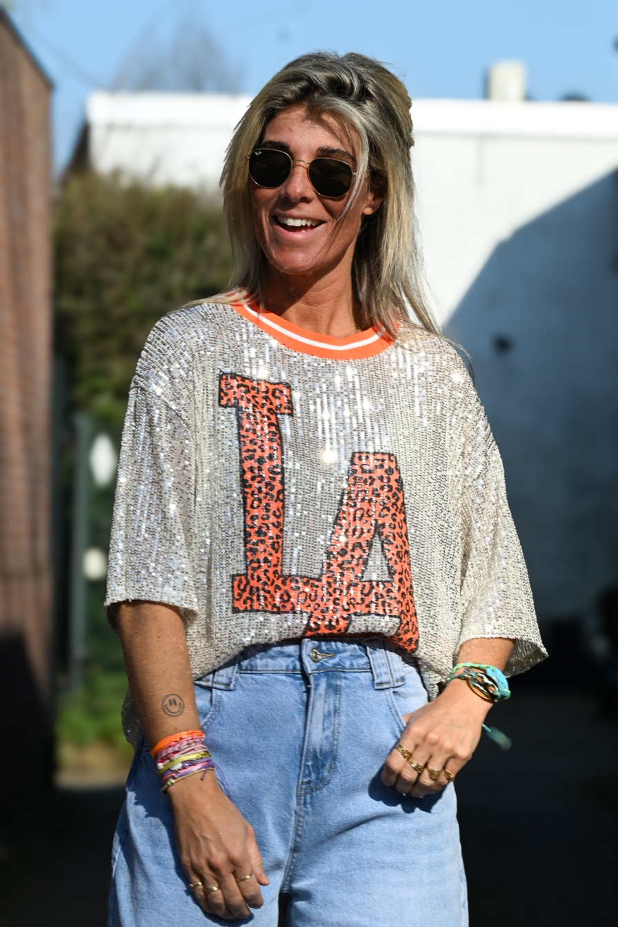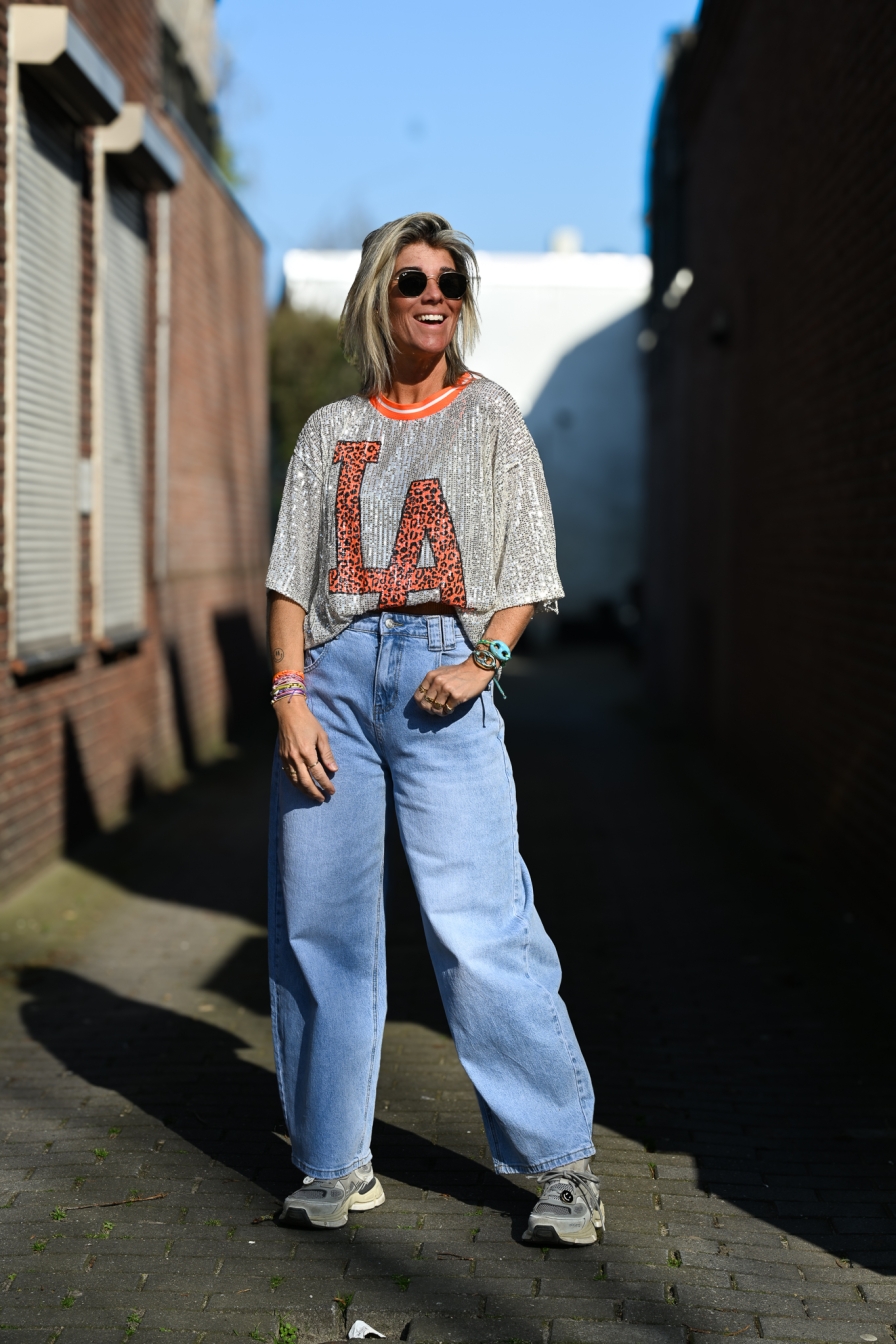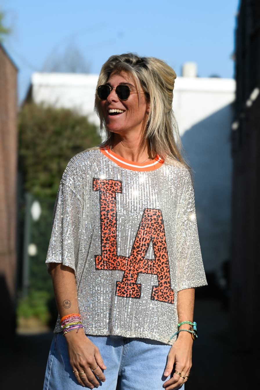 Verzending met DHL !Shirt Glitter LA Oranje