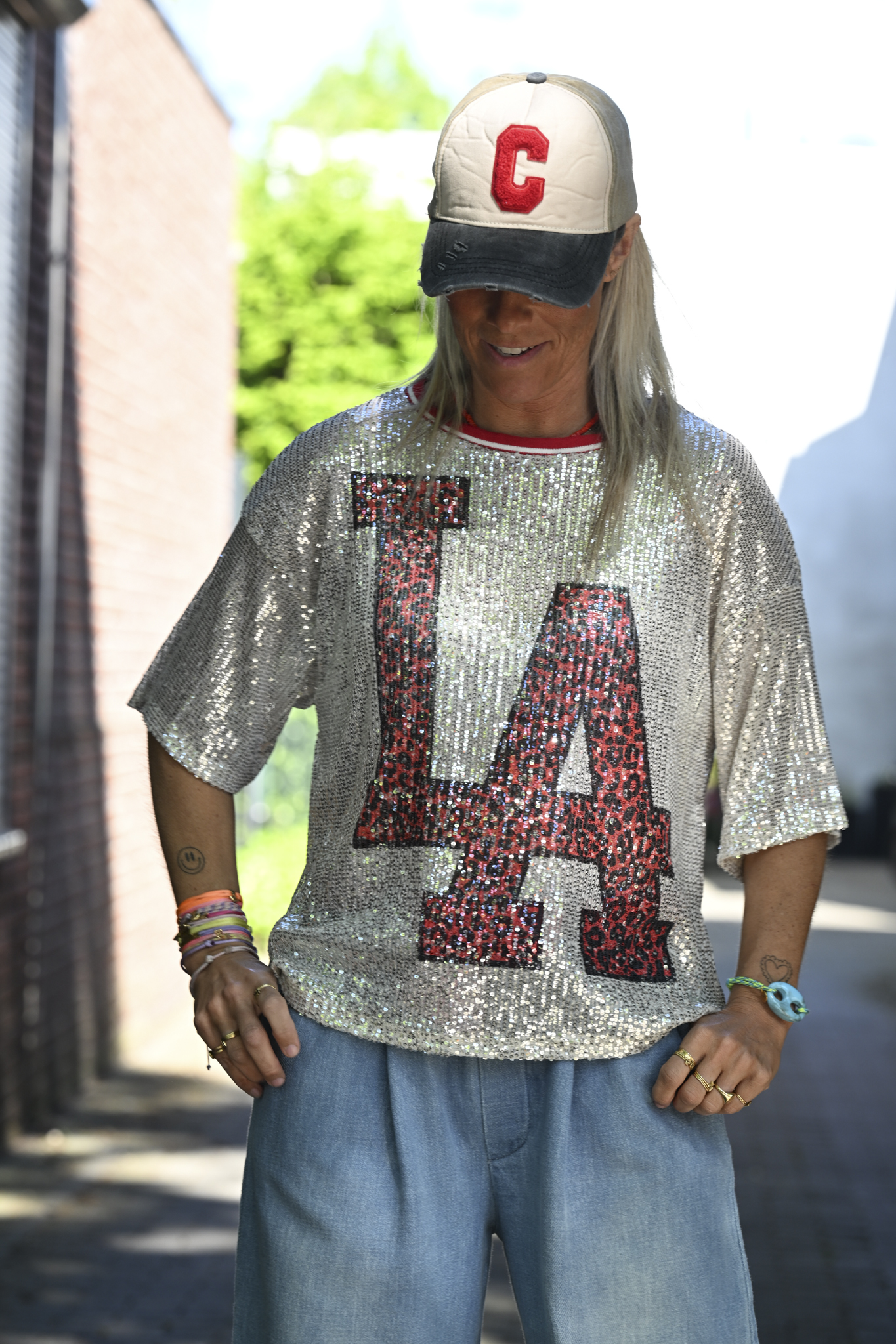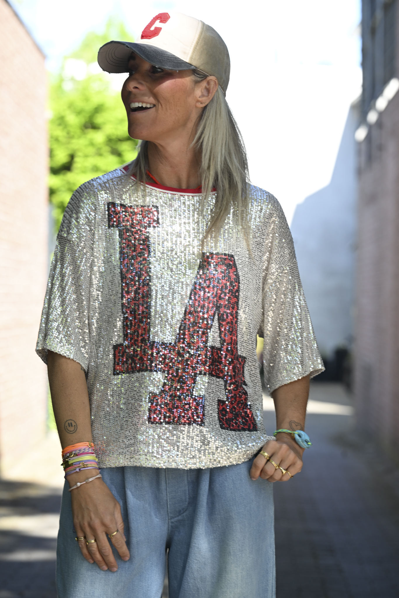 Time to shine! Licht oversized pailletten shirt, mooi afgewerkt en draagbaar tot en met maat XL.