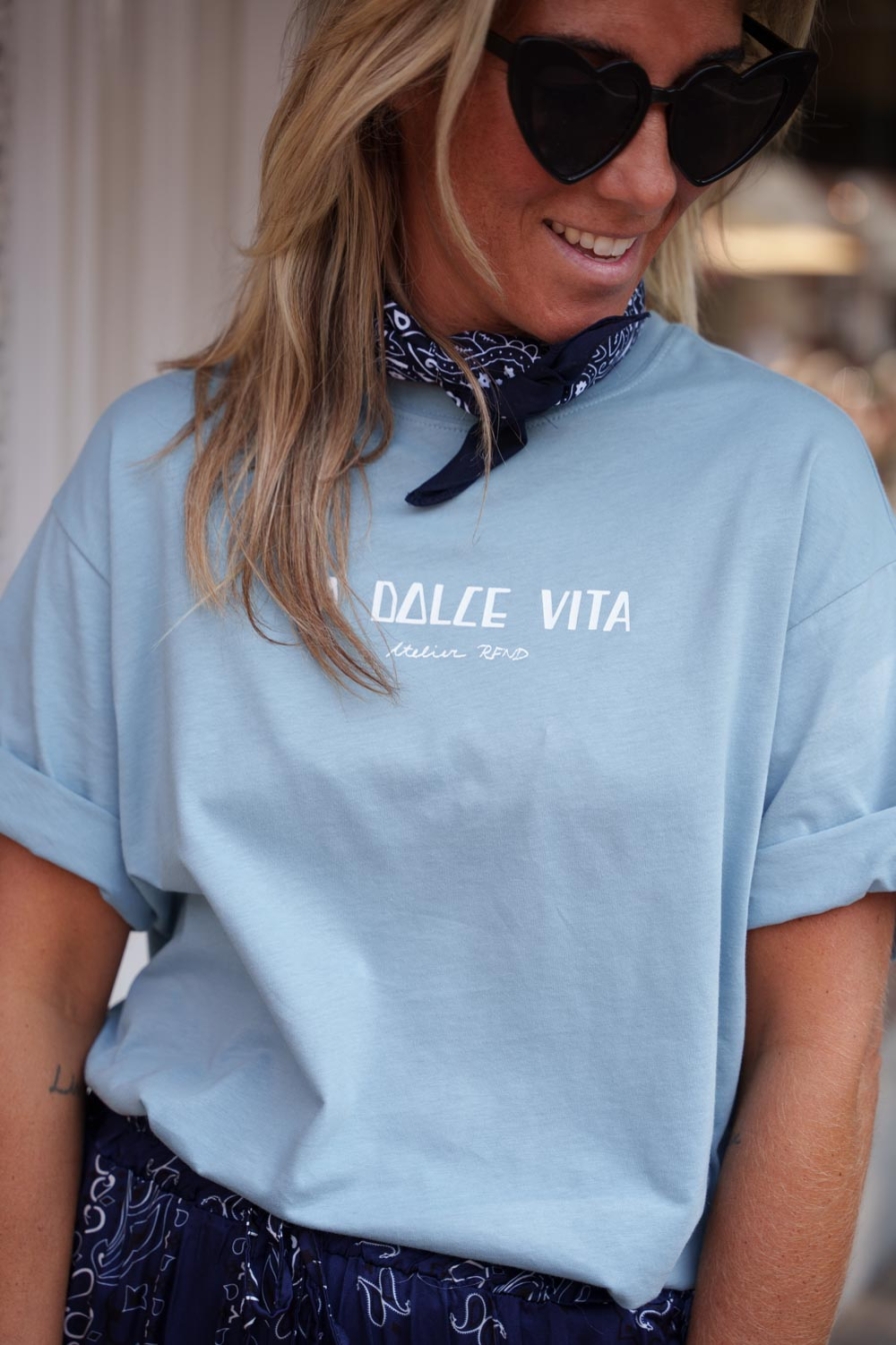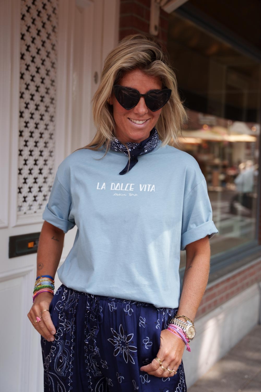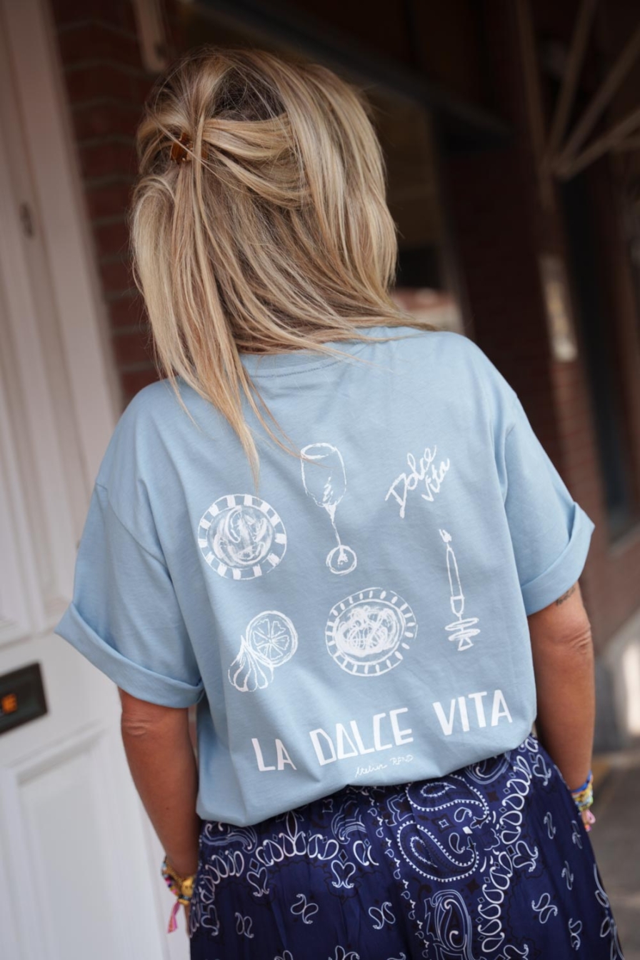 Shirt Italia Dolce Vita heeft een frisse ice blue kleur en is gemaakt van 100% katoen. Met zijn ronde hals en comfortabele fit is het perfect shirt. Op de foto draag ik maat S en ik ben 1.76 meter lang.