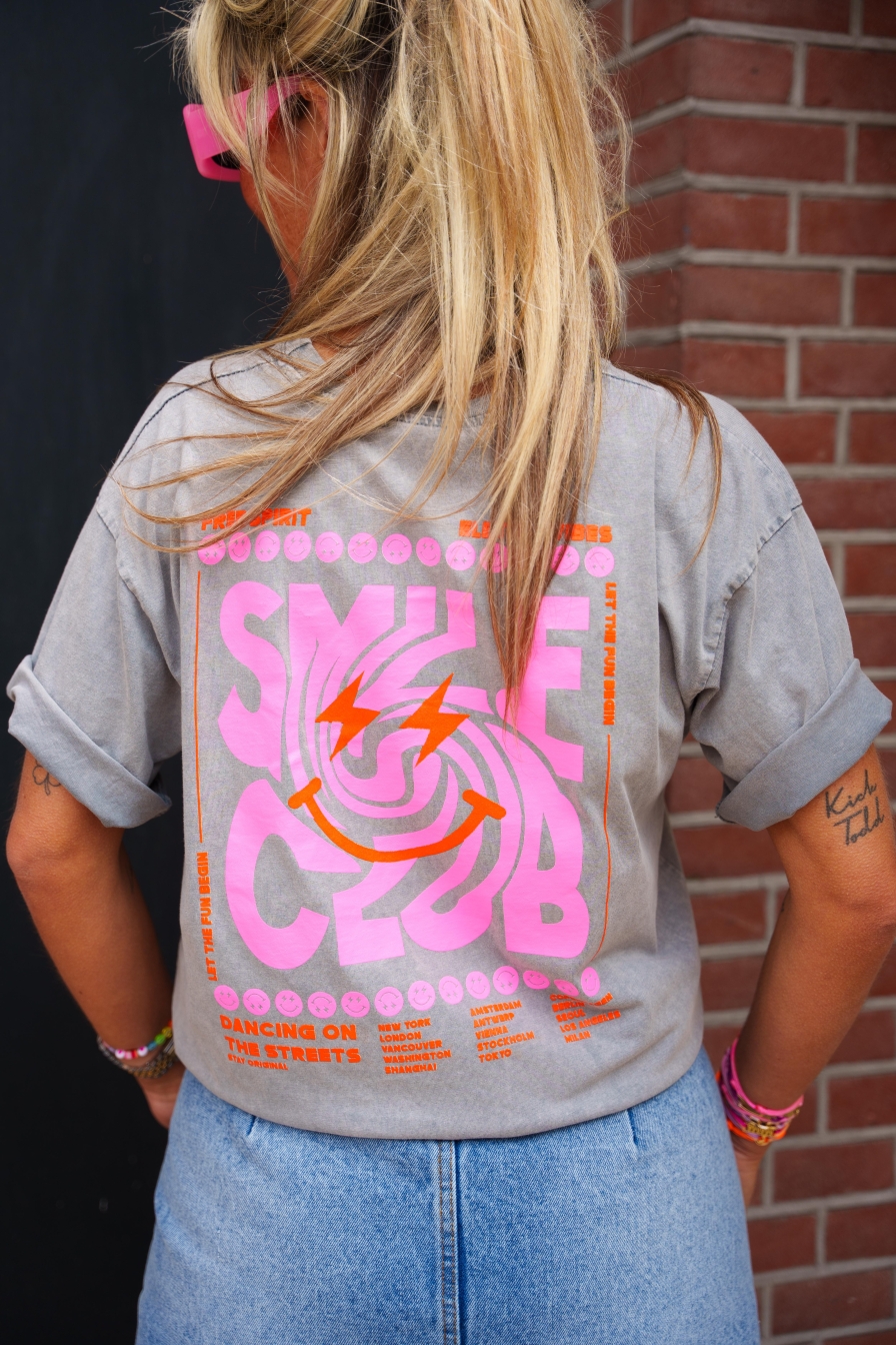 "Shirt Smile Club Ibiza, gemaakt van 100% katoen, brengt je meteen in de beach vibe. Laat die zomerse glimlach maar zien!"