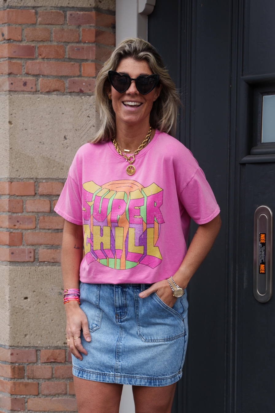 Onesize Shirt gemaakt van 95% katoen, met de tekst SUPER Chill.