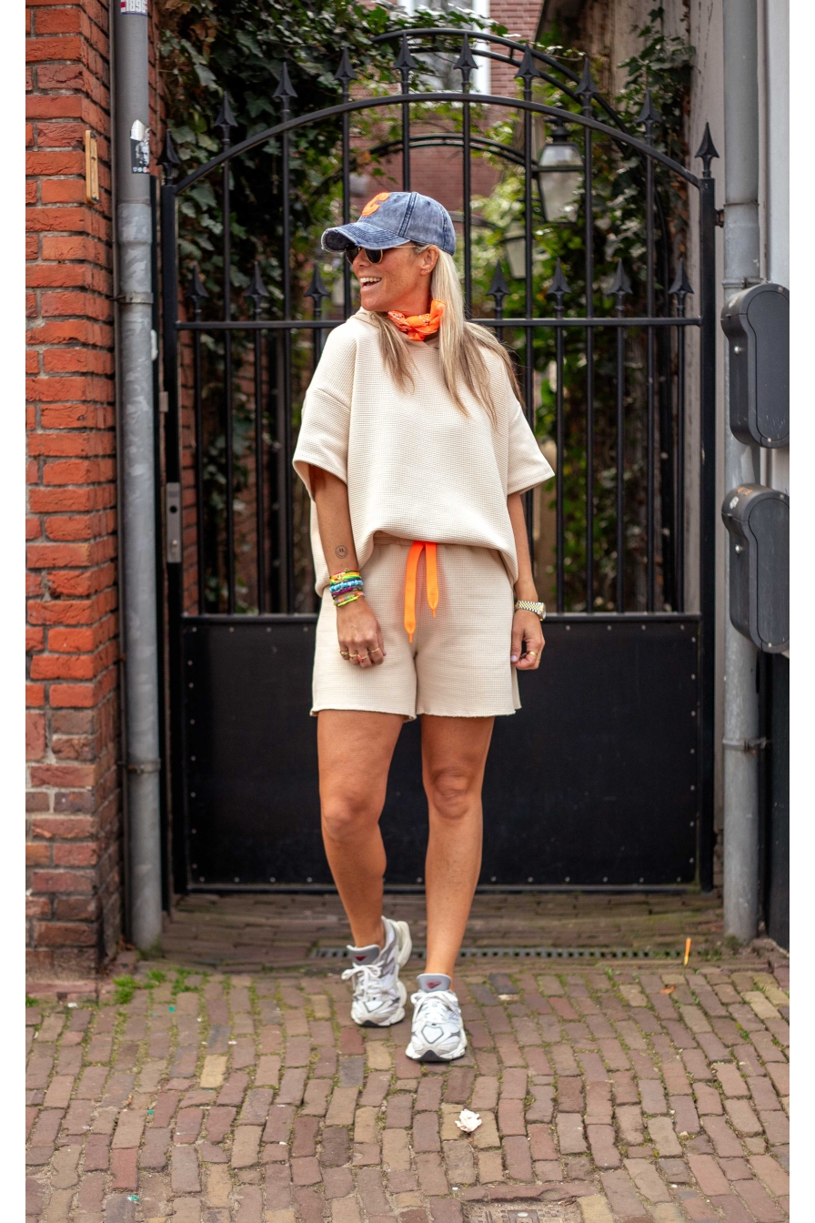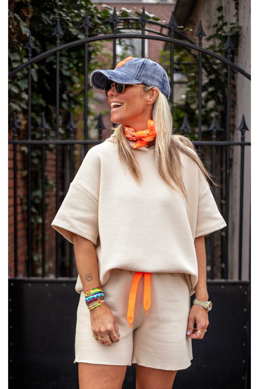 OMG WOW! Dit gave short is gemaakt van 95% katoen en voelt heerlijk comfy aan. Het neon aantrekkoord, waarmee je de pasvorm perfect afstelt! Dit one-size model draag je tot maat L/XL en combineer je natuurlijk met de bijpassende hoodie voor de ultieme co-ord look.