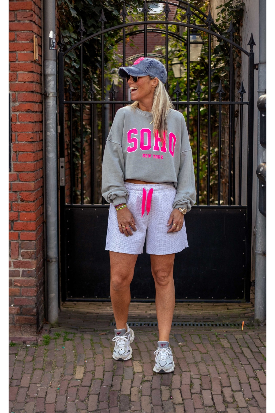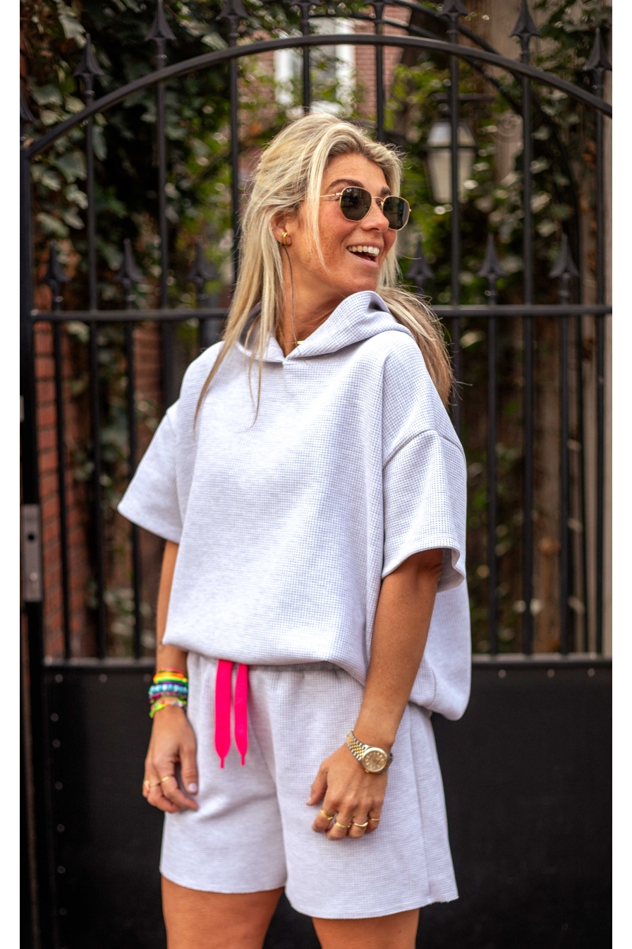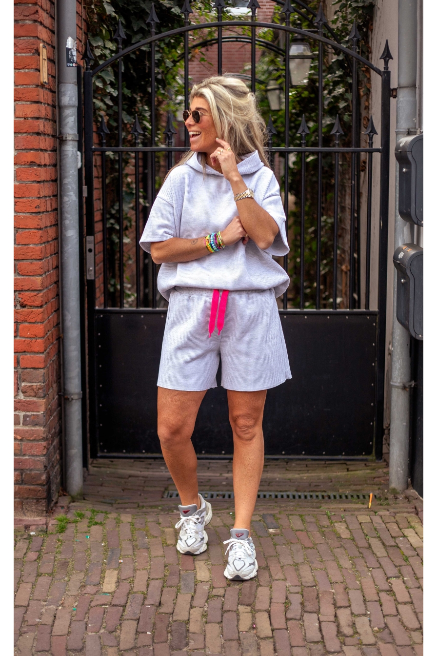 OMG WOW! Dit gave short is gemaakt van 95% katoen en voelt heerlijk comfy aan. Het neon aantrekkoord, waarmee je de pasvorm perfect afstelt! Dit one-size model draag je tot maat L/XL en combineer je natuurlijk met de bijpassende hoodie voor de ultieme co-ord look.
