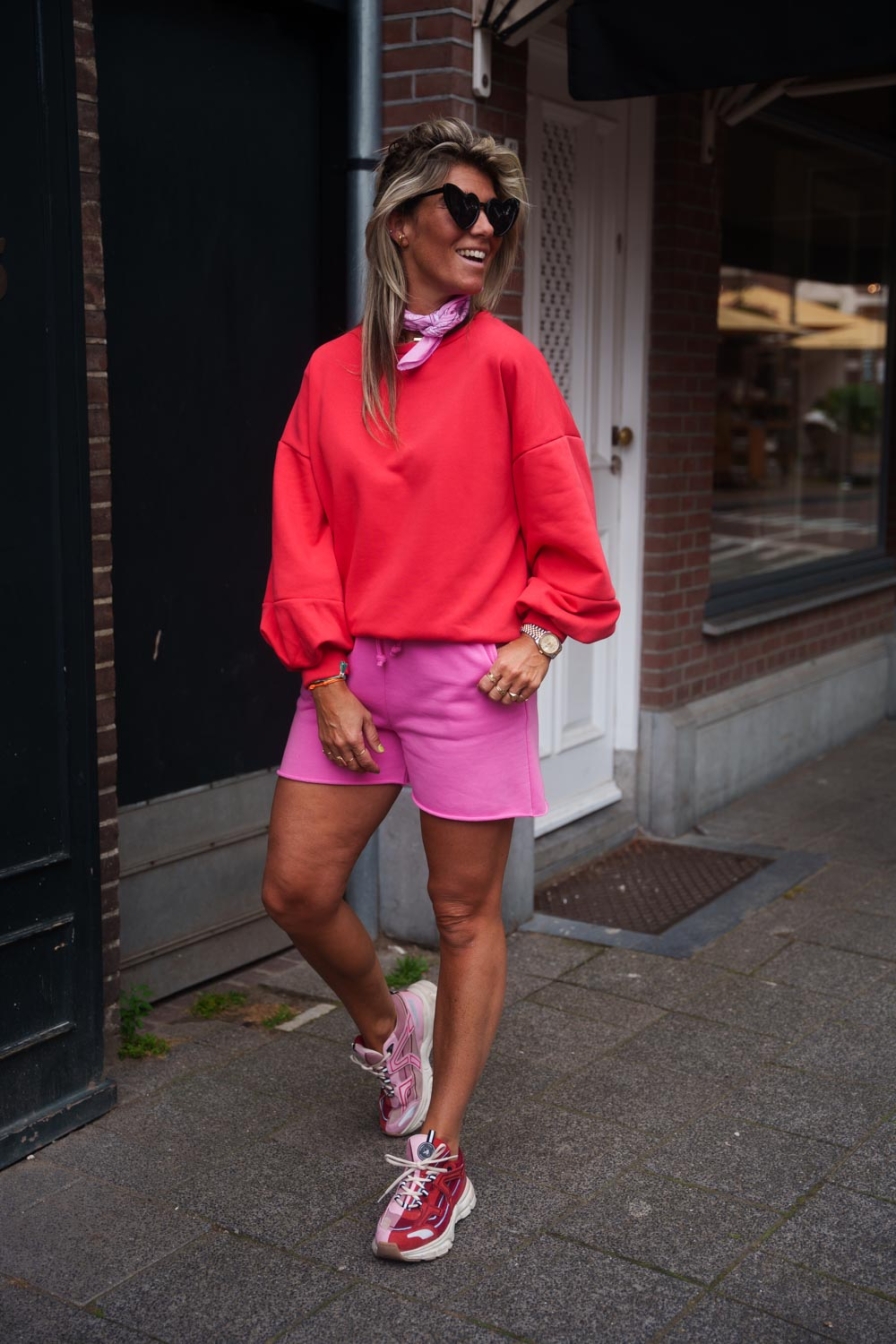 Short Xabi, gemaakt van 100% katoen is een Joggingbroek met stevige elastische band. Met mijn 1,76 draag ik op de foto een maat S/M. Tip: Combineer dit broekje met de oversized Onesize sweater Xabi met 3/4 mouw.