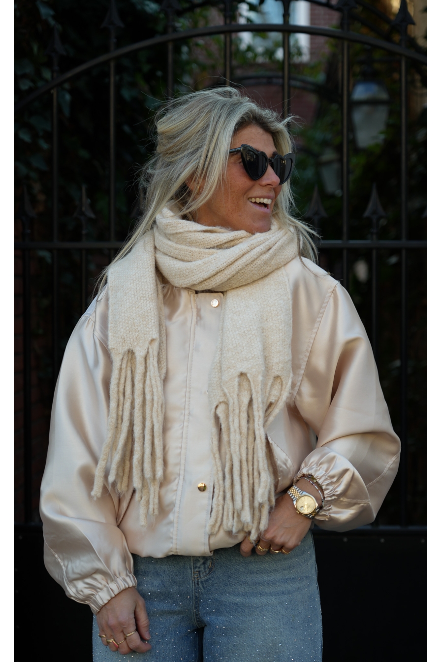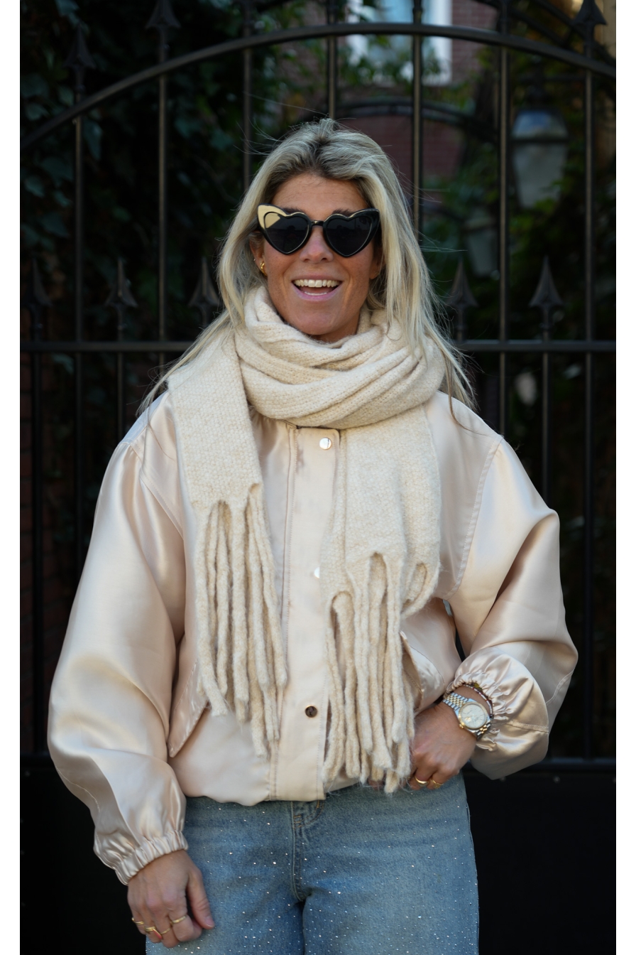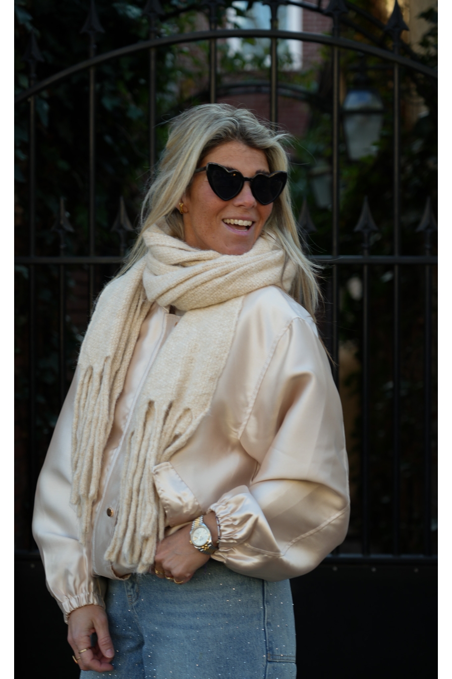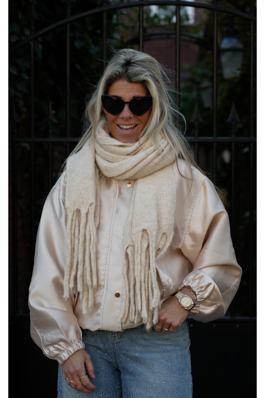 Sjaal Anne is de ultieme cozy must-have! Deze brede en lange sjaal, met 11 speelse franjes aan beide uiteinden, voegt stijl toe aan elke outfit. Gemaakt van een prikkelvrije stof (geen wol) en uitgevoerd in een prachtige kleur. Lengte: 210 cm, breedte: 60 cm