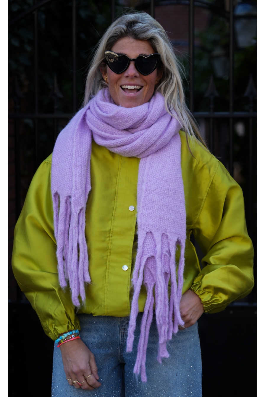 Sjaal Anne is de ultieme cozy must-have! Deze brede en lange sjaal, met 11 speelse franjes aan beide uiteinden, voegt stijl toe aan elke outfit. Gemaakt van een prikkelvrije stof (geen wol) en uitgevoerd in een prachtige kleur. Lengte: 210 cm, breedte: 60 cm