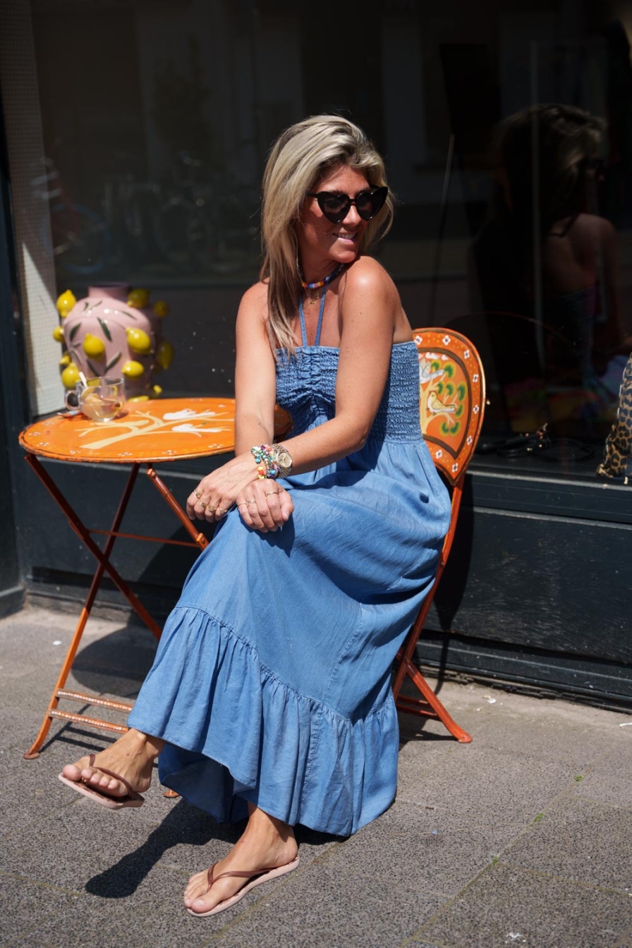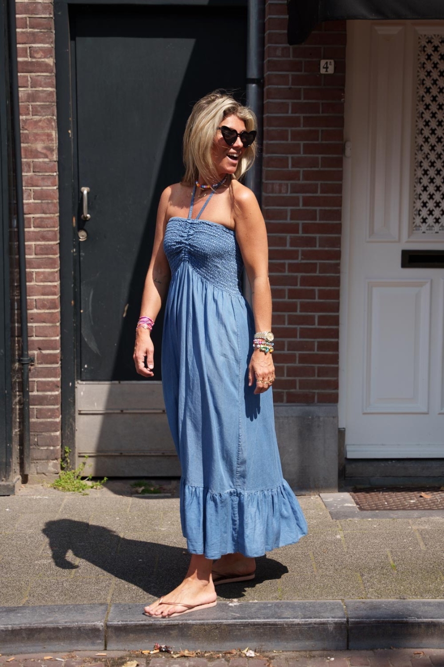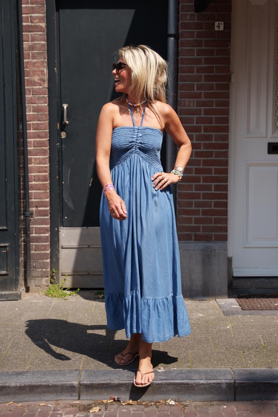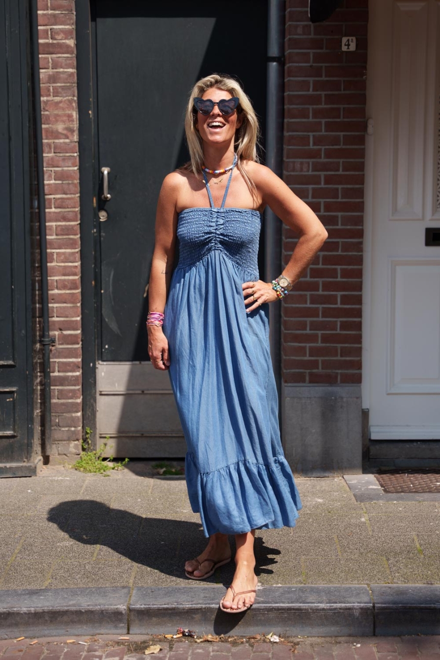 Strapless Dress Naomi is gemaakt van 100% katoen. De top biedt veel stretch, waardoor deze perfect past bij elke cupmaat. De lus op de borst kan worden gestrikt of als bandjes in de nek worden geknoopt. Kortom, een heerlijke jurk.
